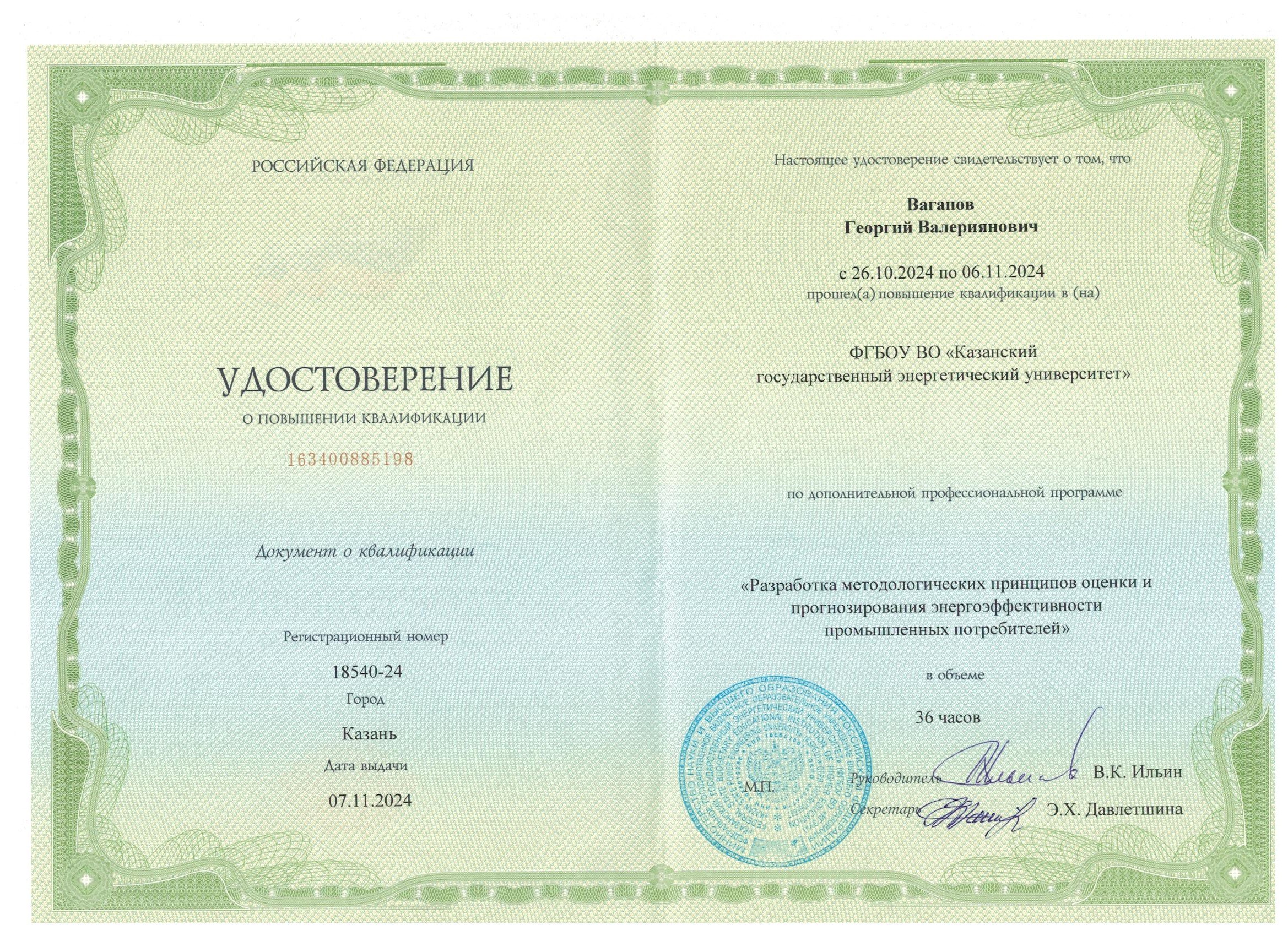 ФГБОУ ВО "Казанский государственный энергетический университет" Разработка методологических принципов оценки и прогнозирования энергоэффективности промышленных потребителей 18540-24 07.11.2024 36
