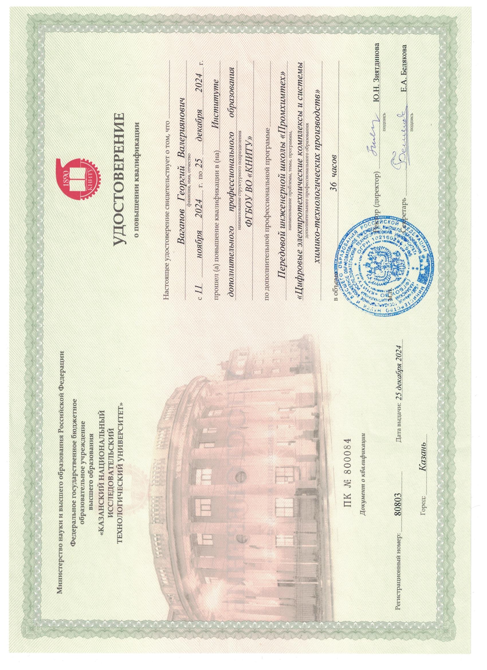 ФГБОУ ВО "КНИТУ" Передовая инженерная школа "Промхимтех" "Цифровые электротехнические комплексы и системы химико-технологического производства" 80803 25.12.2024 36