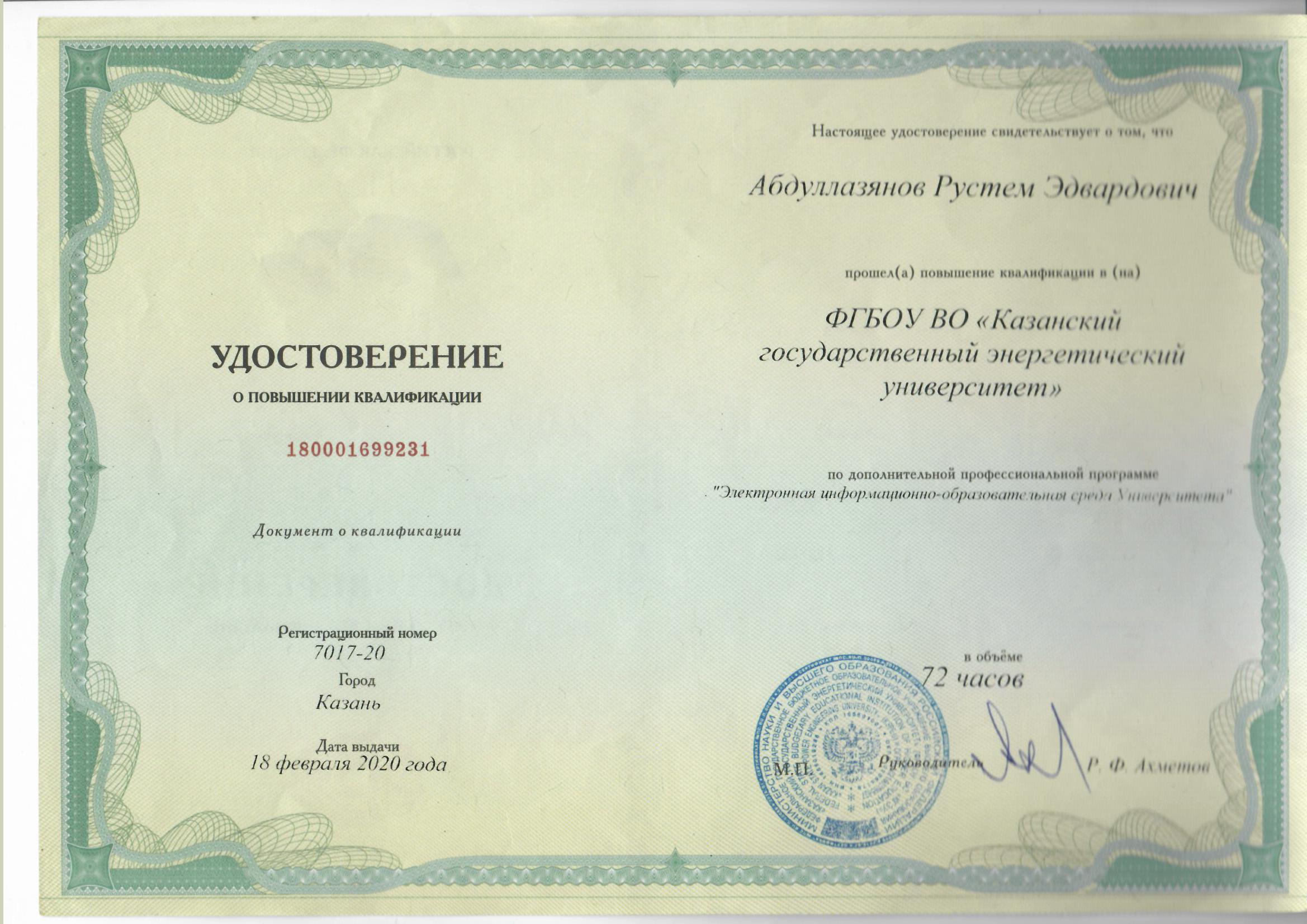 ФГБОУ ВО "КГЭУ" Электронная информационно-образовательная среда Университета 180001699231 18.02.2020 72