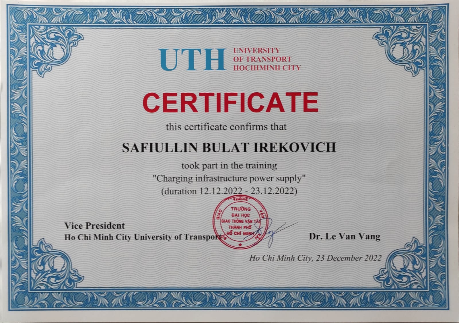 Сафиуллин, Б. И. Комплекс диагностики и поиска неисправностей зарядных станций для электромобилей / Б. И. Сафиуллин, Х. Ф. Вахитов // XXVI Всероссийский аспирантско-магистерский научный семинар, посвященный дню энергетика : Материалы докладов семинара. В 3-х томах, Казань, 06–07 декабря 2022 года / Под общей редакцией Э.Ю. Абдуллазянова. Том 1. – Казань: Казанский государственный энергетический университет, 2023. – С. 270-273. – EDN WOIHKI. |