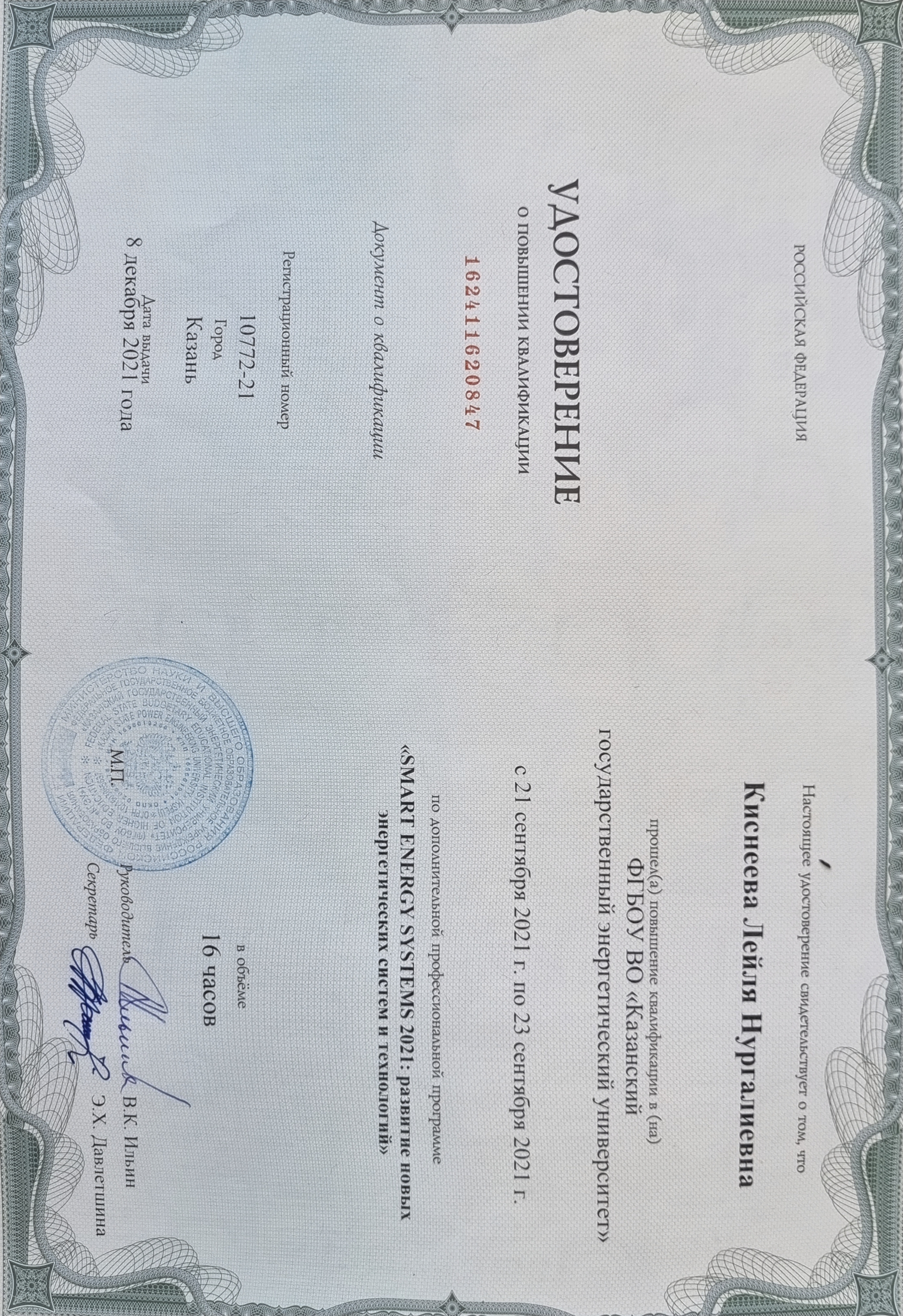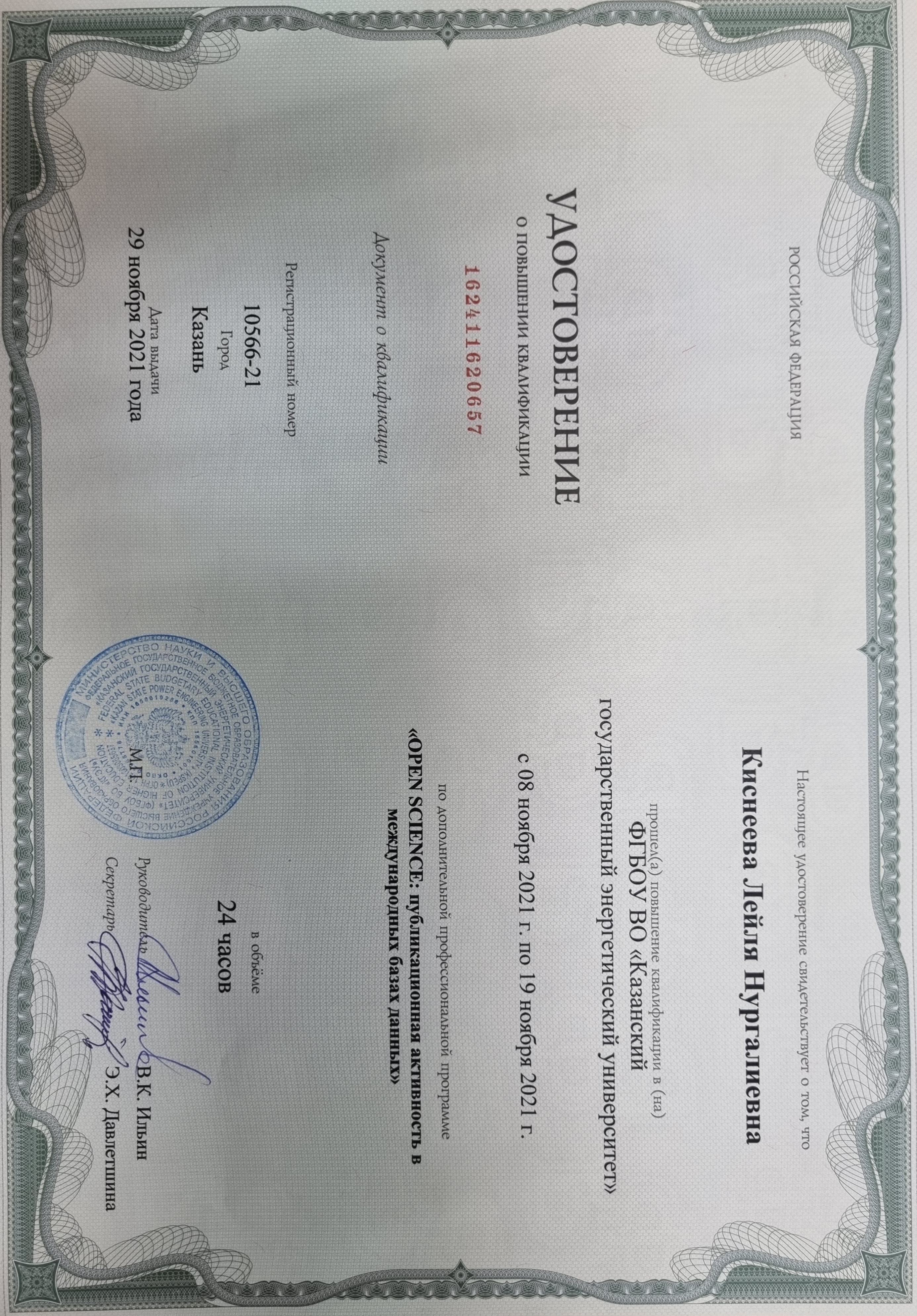 Kisneeva L.N., Aukhadeev A.E., Tukhbatullina D.I., Staroverova U.V.