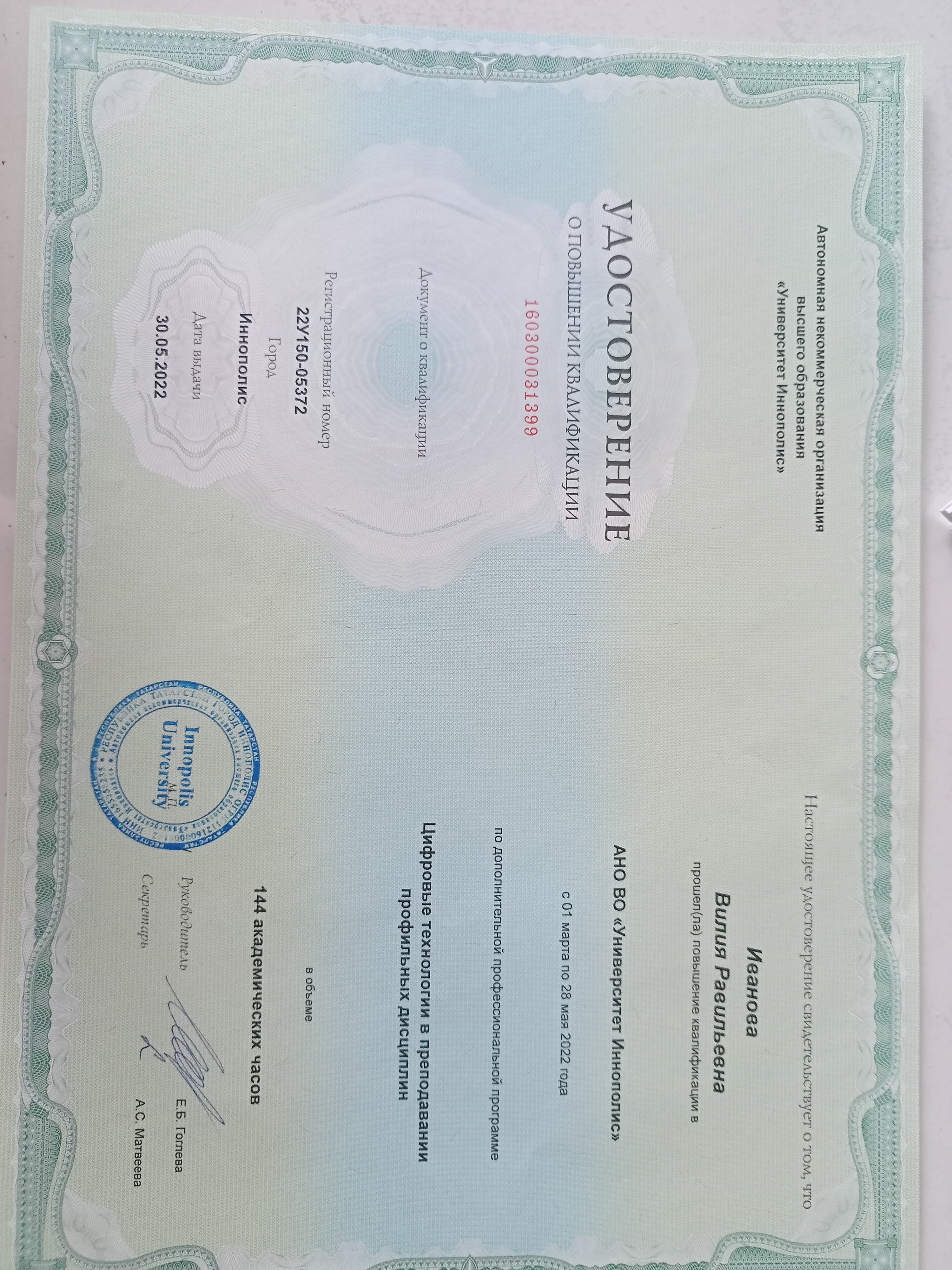 Иванова В.Р., Жукова Ю.И. Об изменении подходов к организации образовательного процесса. / Материалы IV Всероссийской научно-практической конференции «Проблемы и перспективы развития электроэнергетики и электротехники», 2022. Т. 1. С. 253-256. |