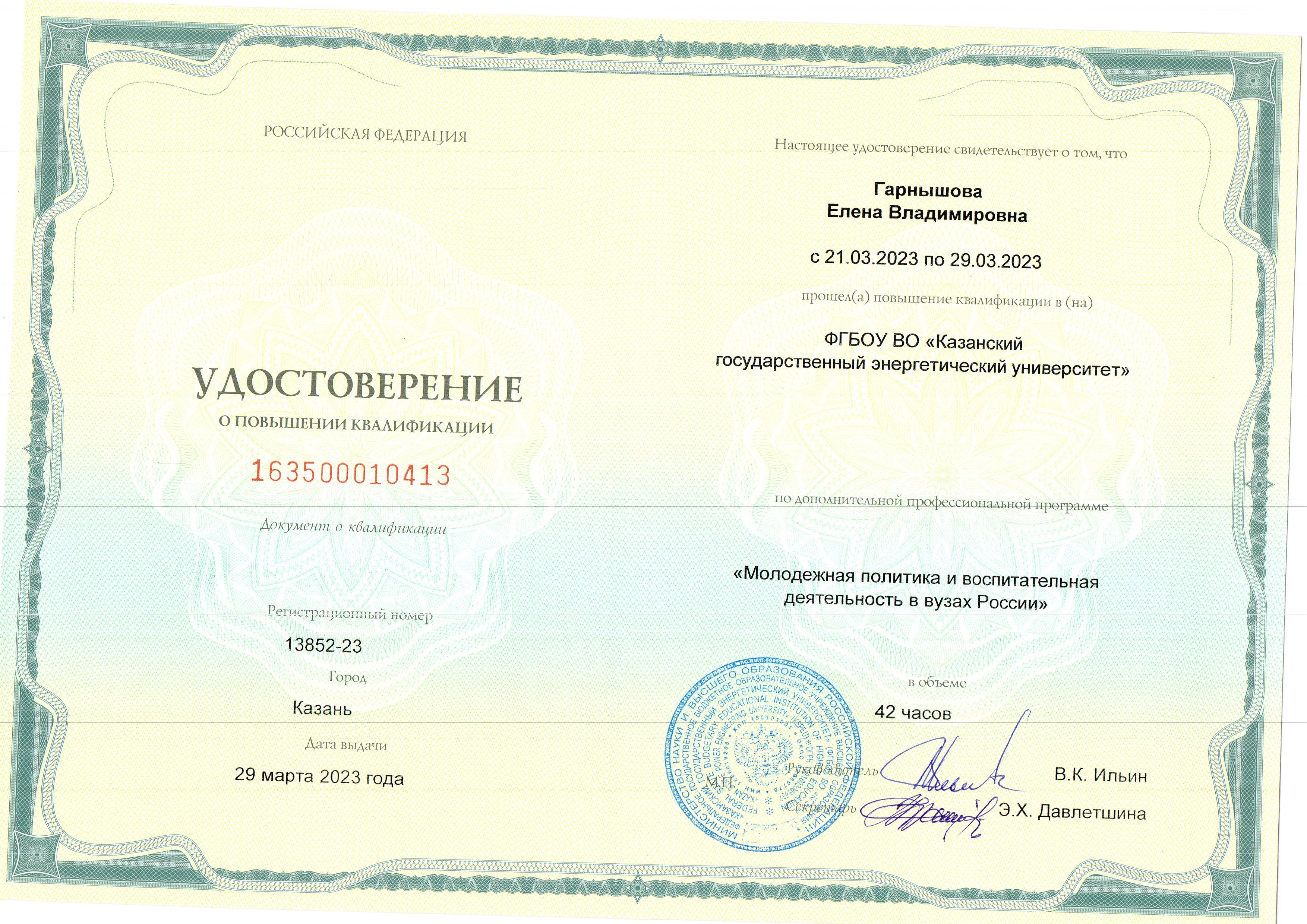 Повышение квалификации по дополнительной профессиональной программе «Молодежная политика и воспитательная деятельность в вузах России» |