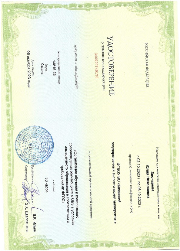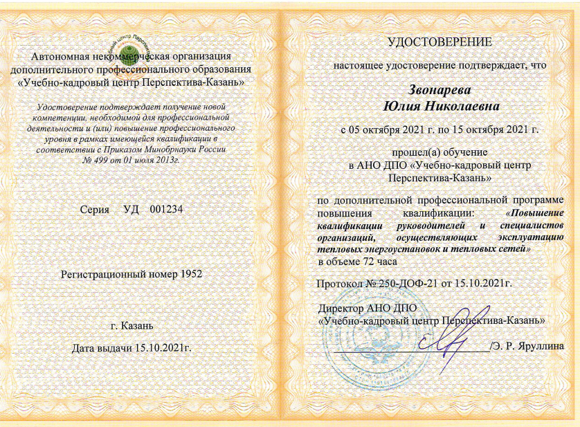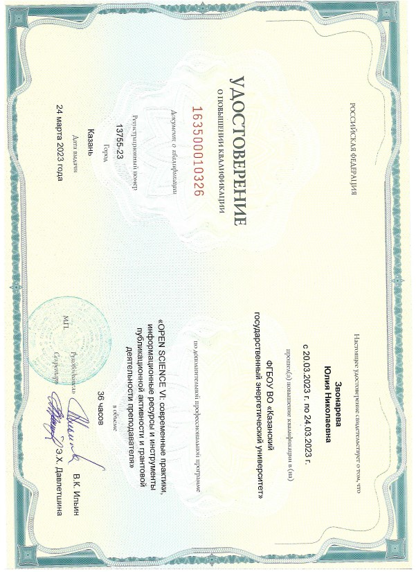 В 2013 г. Курсы повышения квалификации преподавателей ФГБОУ ВПО «КГЭУ» по программе «Реализация моделей подготовки выпускника высшей школы на основе ФГОС третьего поколения».
