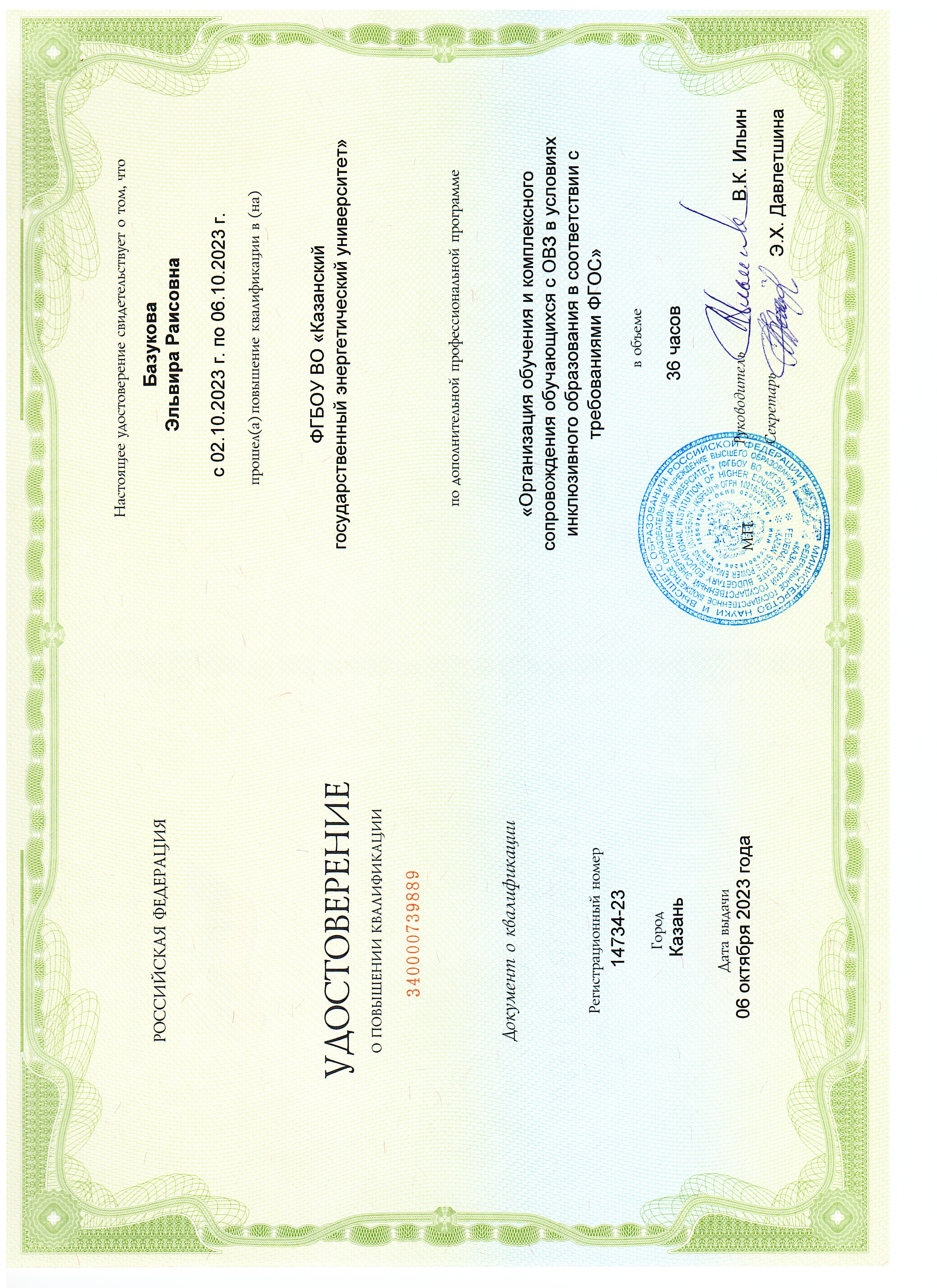 КГЭУ Организация обучения и комплексного сопровождения обучающихся с ОВЗ в условиях инклюзивного образования в соответствии с требованиями ФГОС 14734-23 06.10.2023 36