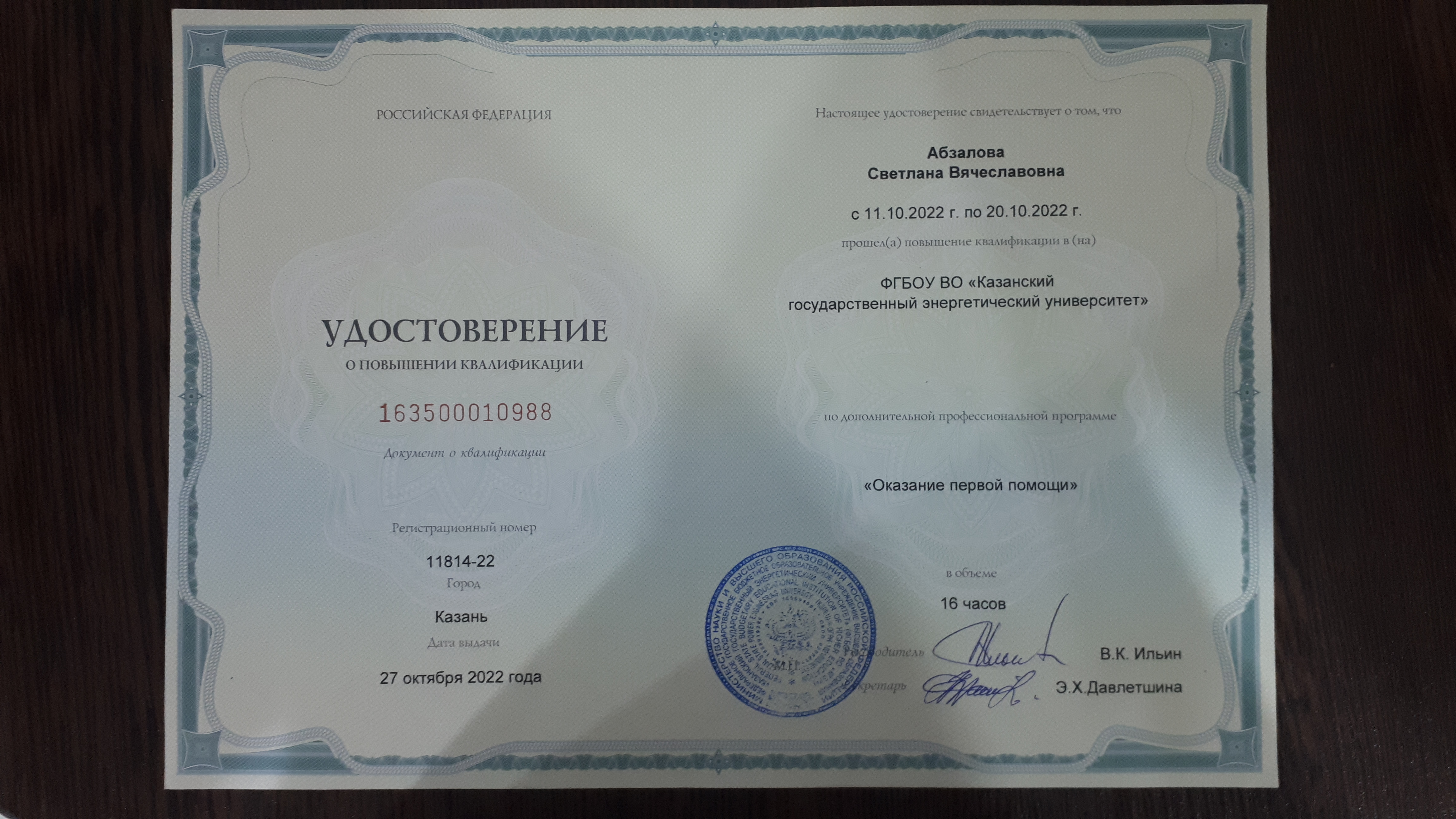 ФГБОУ ВО "Казанский государственный энергетический университет" "Оказание первой помощи" 11814-22 27.10.2022 16