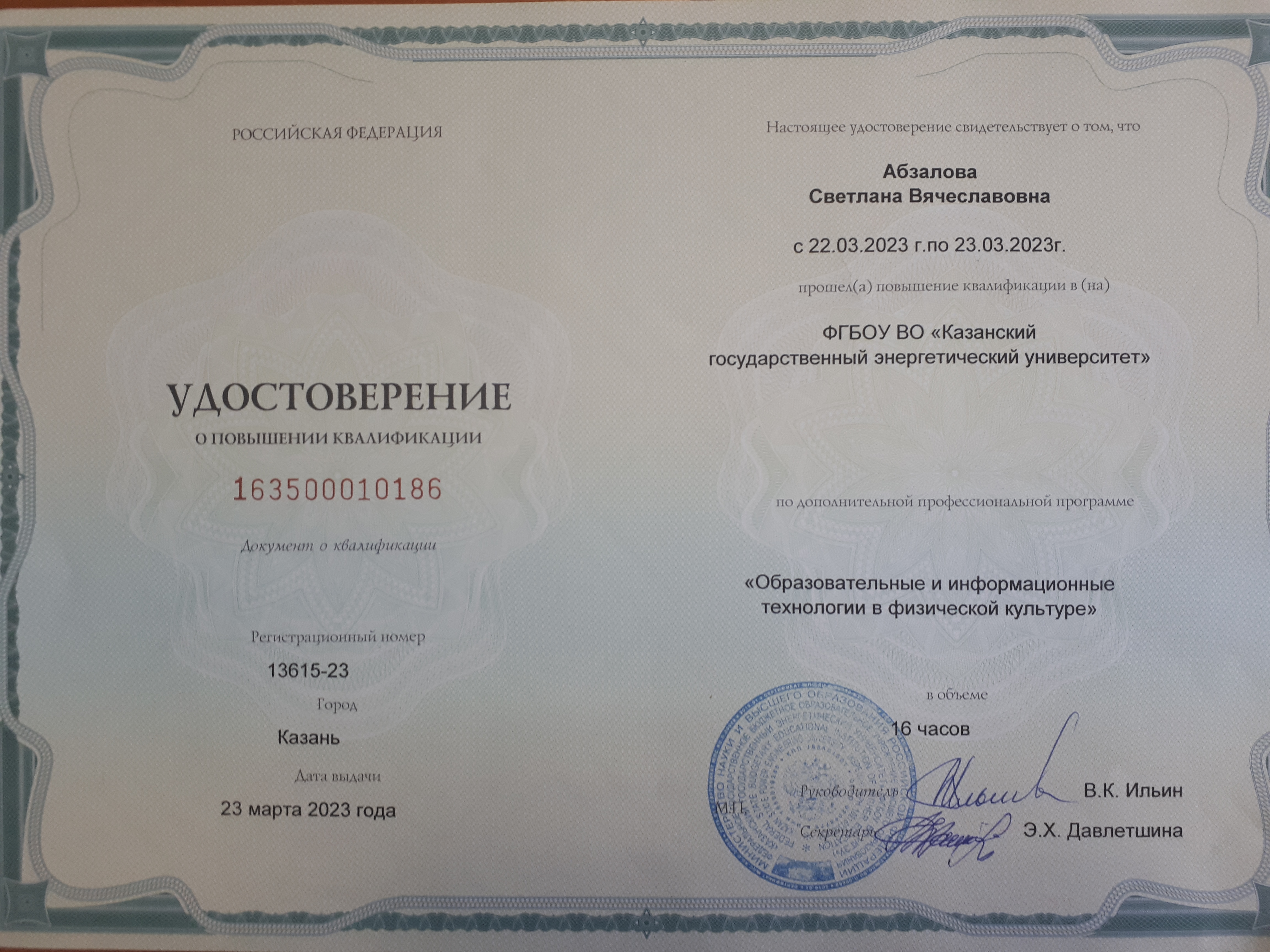 ФГБОУ ВО "Казанский государственный энергетический университет" "Образовательные и информационные технологии в физической культуре" 13615-23 23.03.2023 16