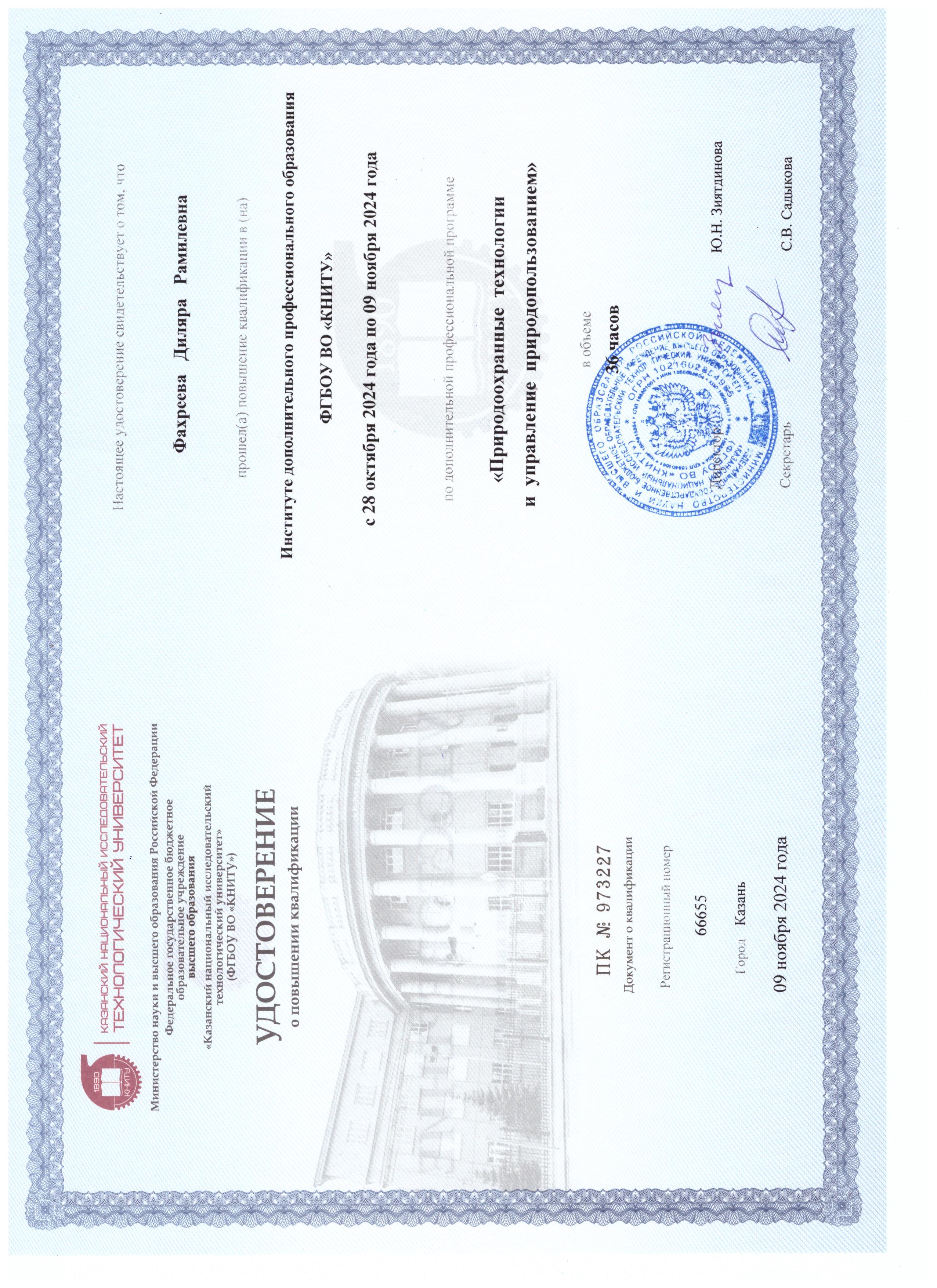 ФГБОУ ВО "КНИТУ" Природоохранные технологии и управление природопользованием ПК № 973227 09.11.2024 36