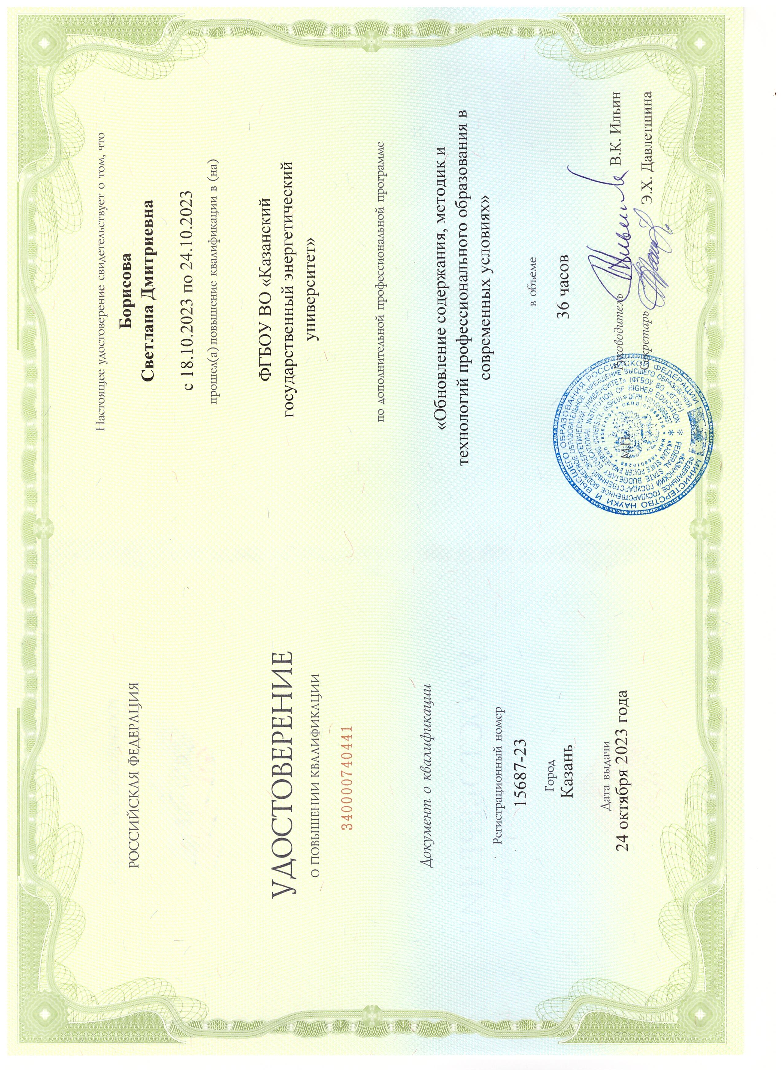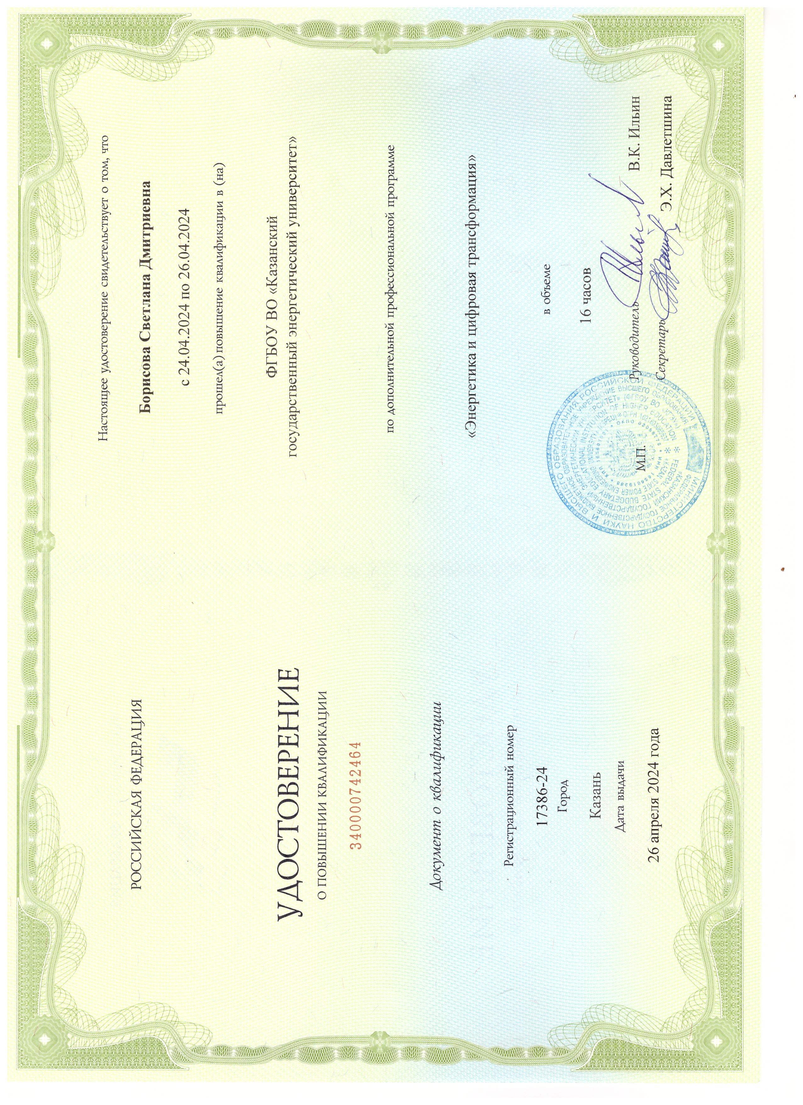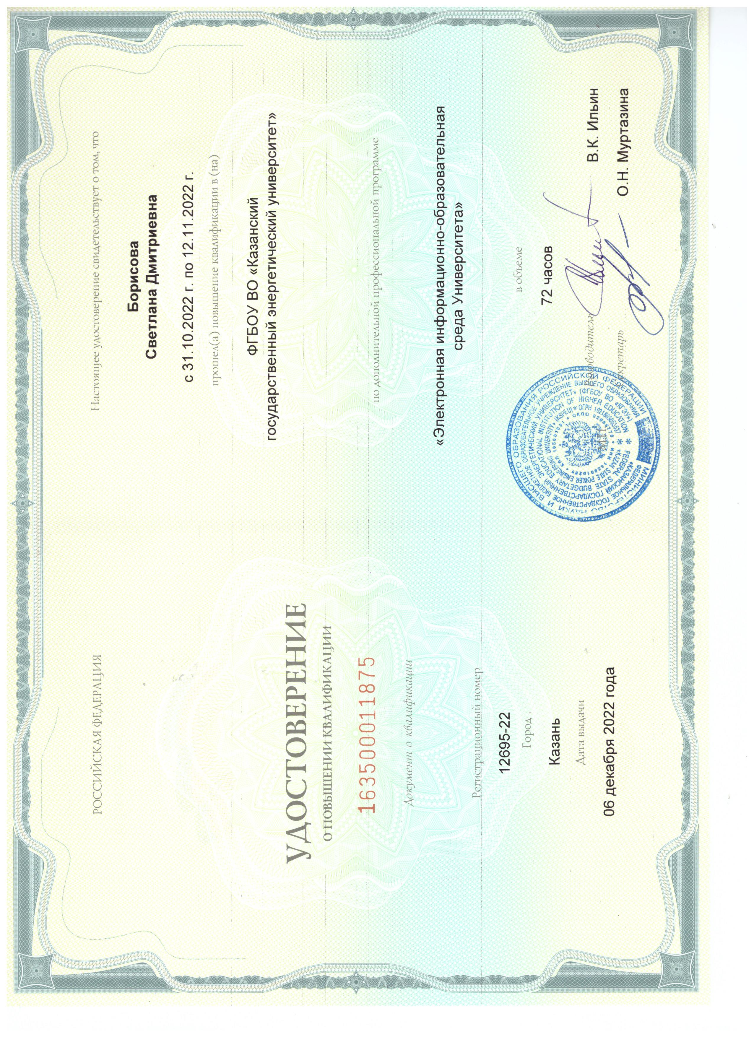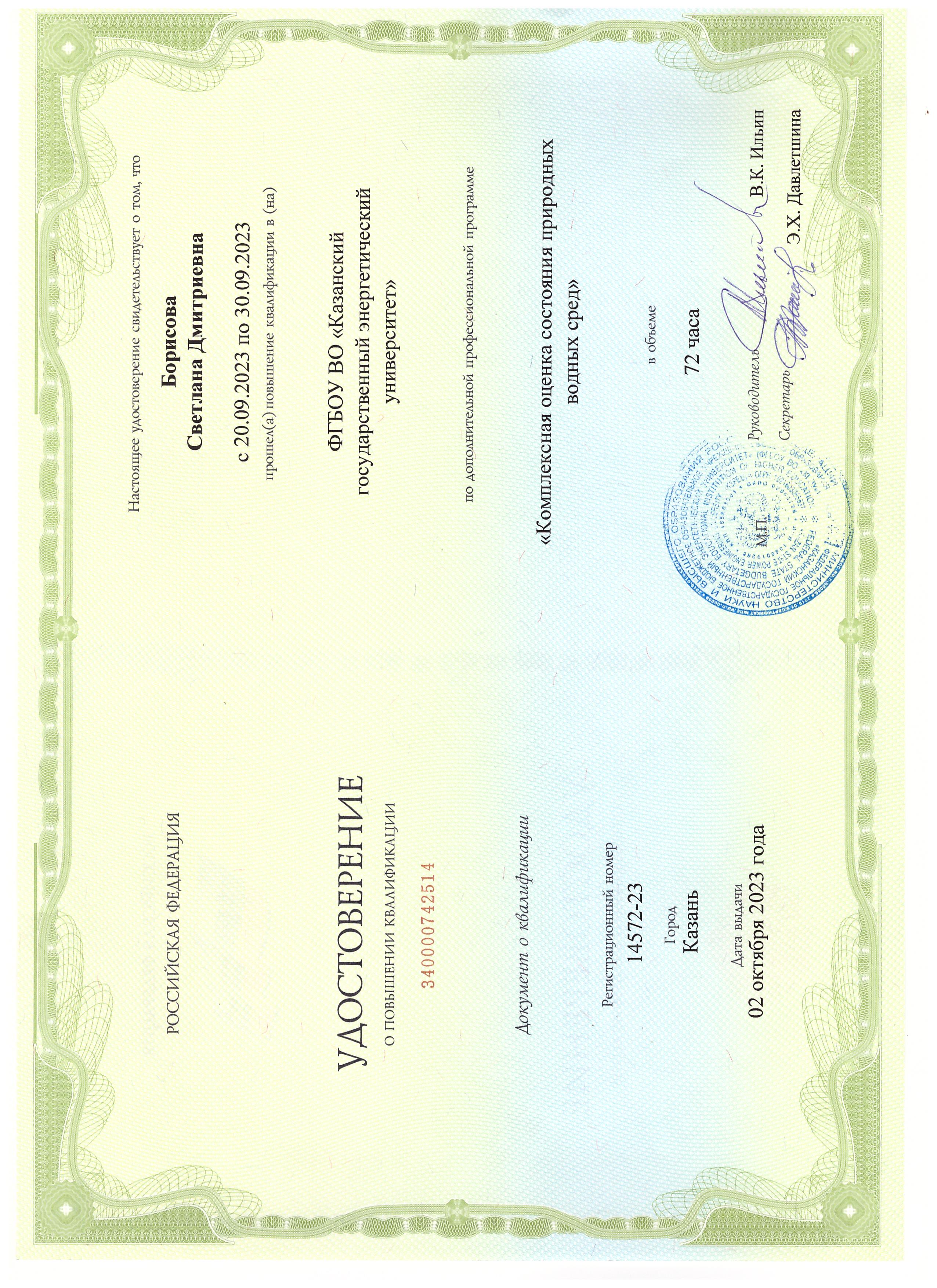 С.Д.Борисова. Электронный дистанционный учебно – методический комплекс по дисциплине «Биотестирование». Свидетельство РФ об отраслевой регистрации электронного ресурса. Свидетельство РФ об отраслевой регистрации электронного ресурса №22596 от 22.02.2017г. |