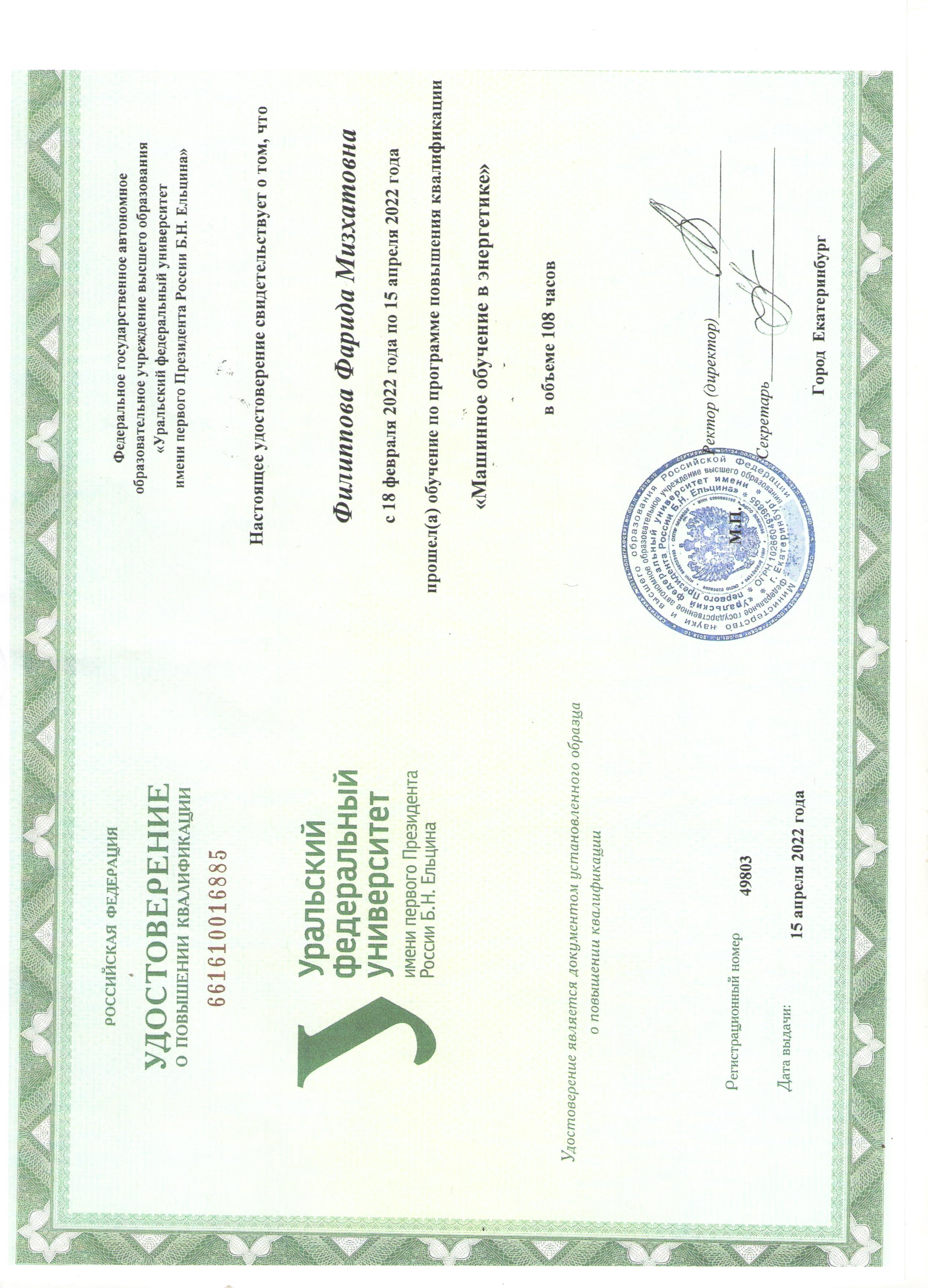 Уральский федеральный университет имени первого Президента России Б.Н. Ельцина Машинное обучение в энергетике 49795 15.04.2022 108