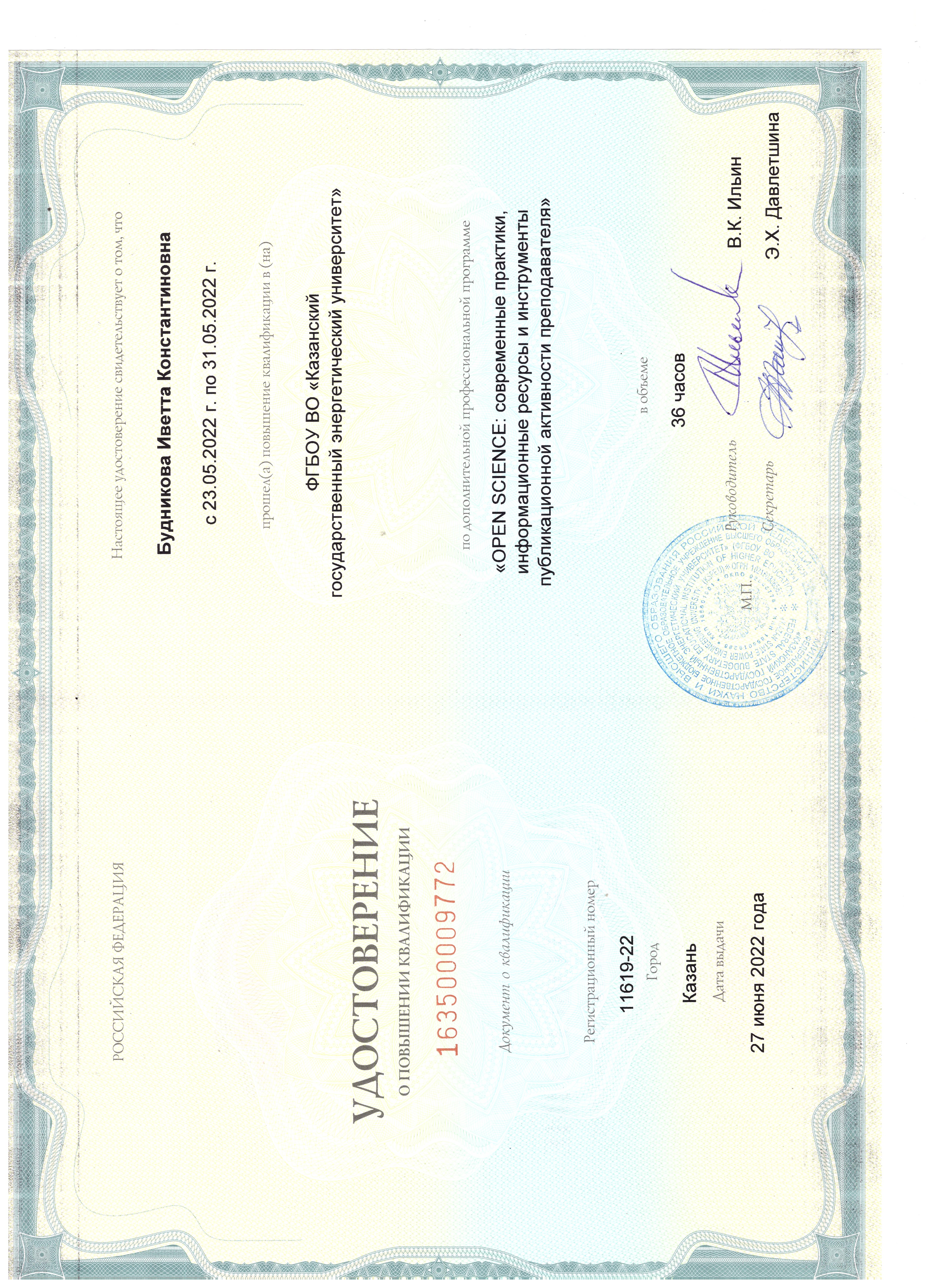 Будникова И.К.,Хузиахметова Р.Ф Свидетельство о государственной регистрации программы для ЭВМ № 2022610430 от 12.01.2022 |