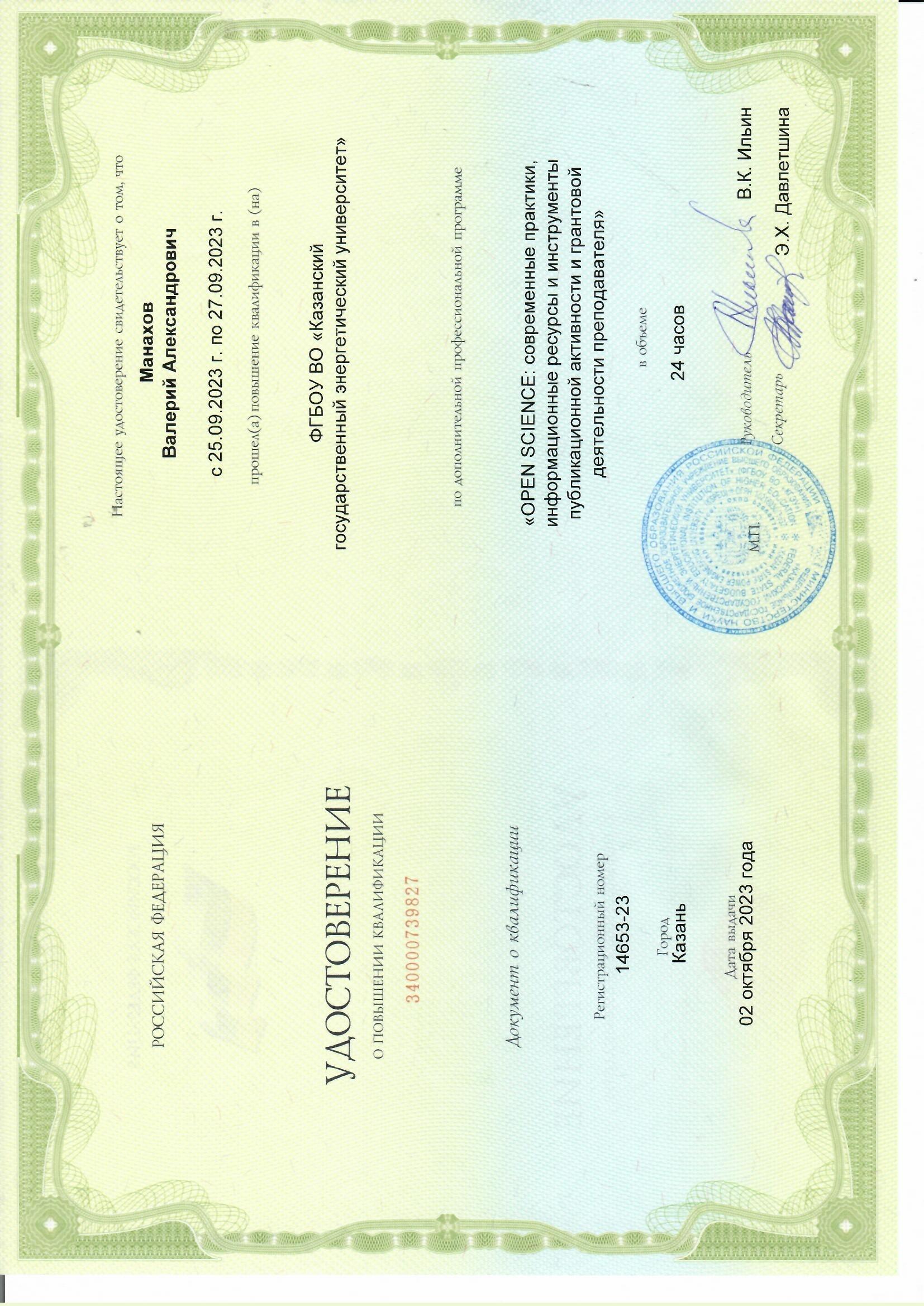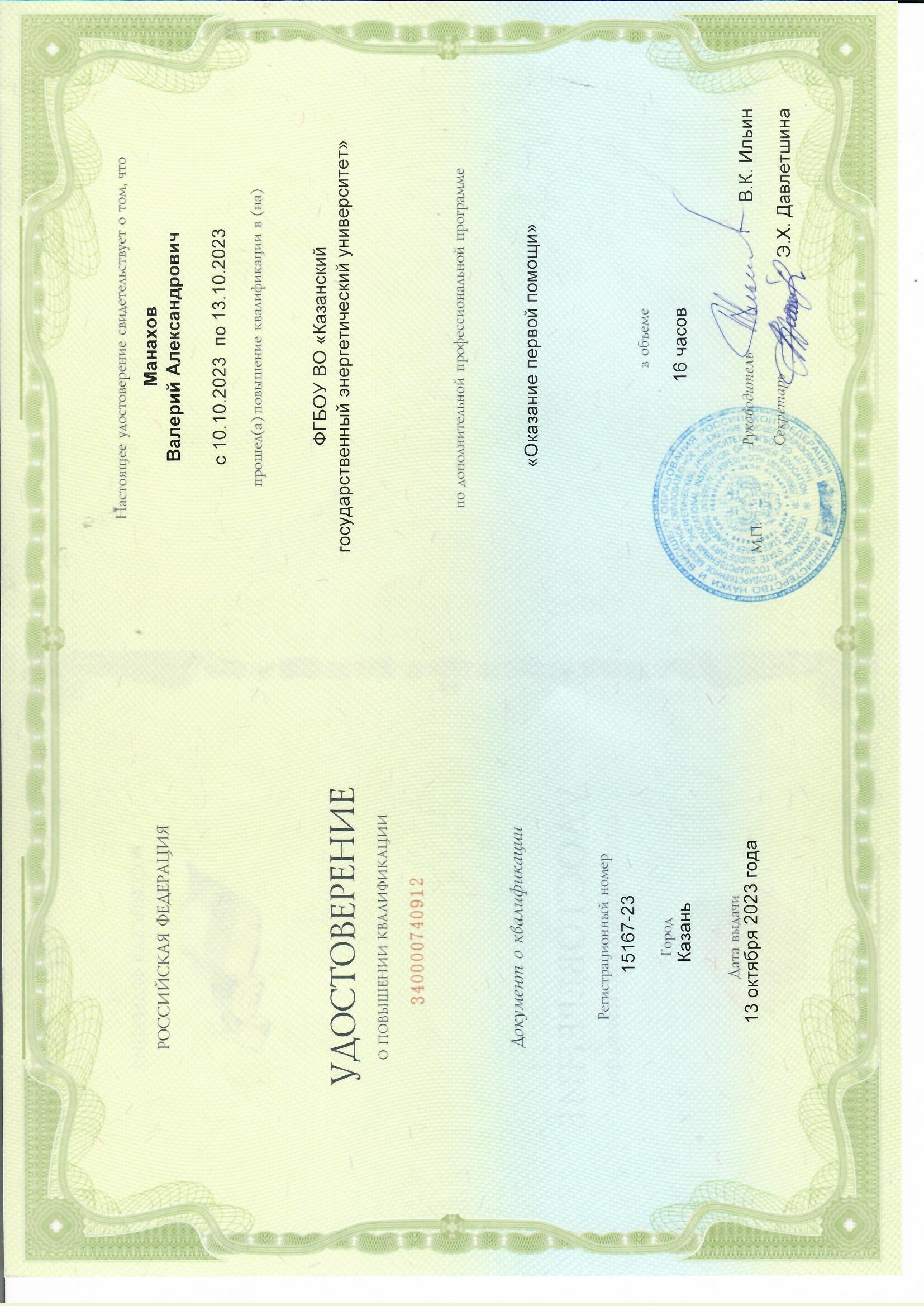 установок // Диагностирование синхронного двигателя по виброакустическим параметрам // Материалы докладов XXIII аспирантско-магистерского семинара, посвященного Дню энергетика / под общ. ред. ректора КГЭУ Э.Ю. Абдуллазянова. – Казань: Казан. гос. энерг. ун-т, 2019 Манахов В.А. |