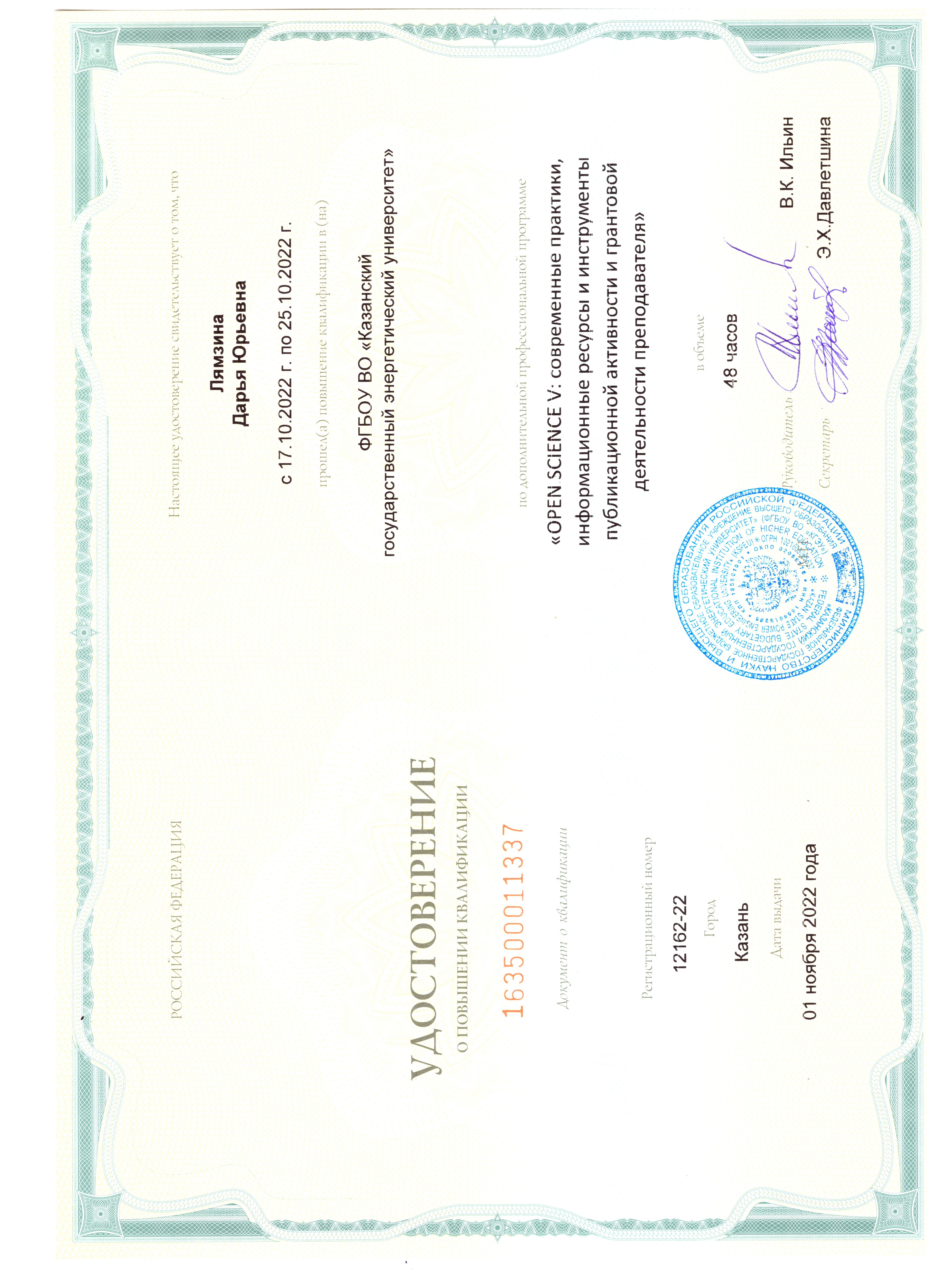 Повышение квалификации по дополнительной профессиональной программе "OPEN SCIENCE VII: современные практики, информационные ресурсы и инструменты публикационной активности и грантовой деятельности преподавателя" |