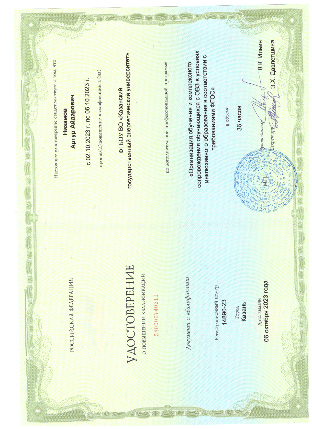 ФГБОУ ВО "КГЭУ" Организация обучения и комплексного сопровождения обучающихся с ОВЗ 14890-23 11.10.2023 36