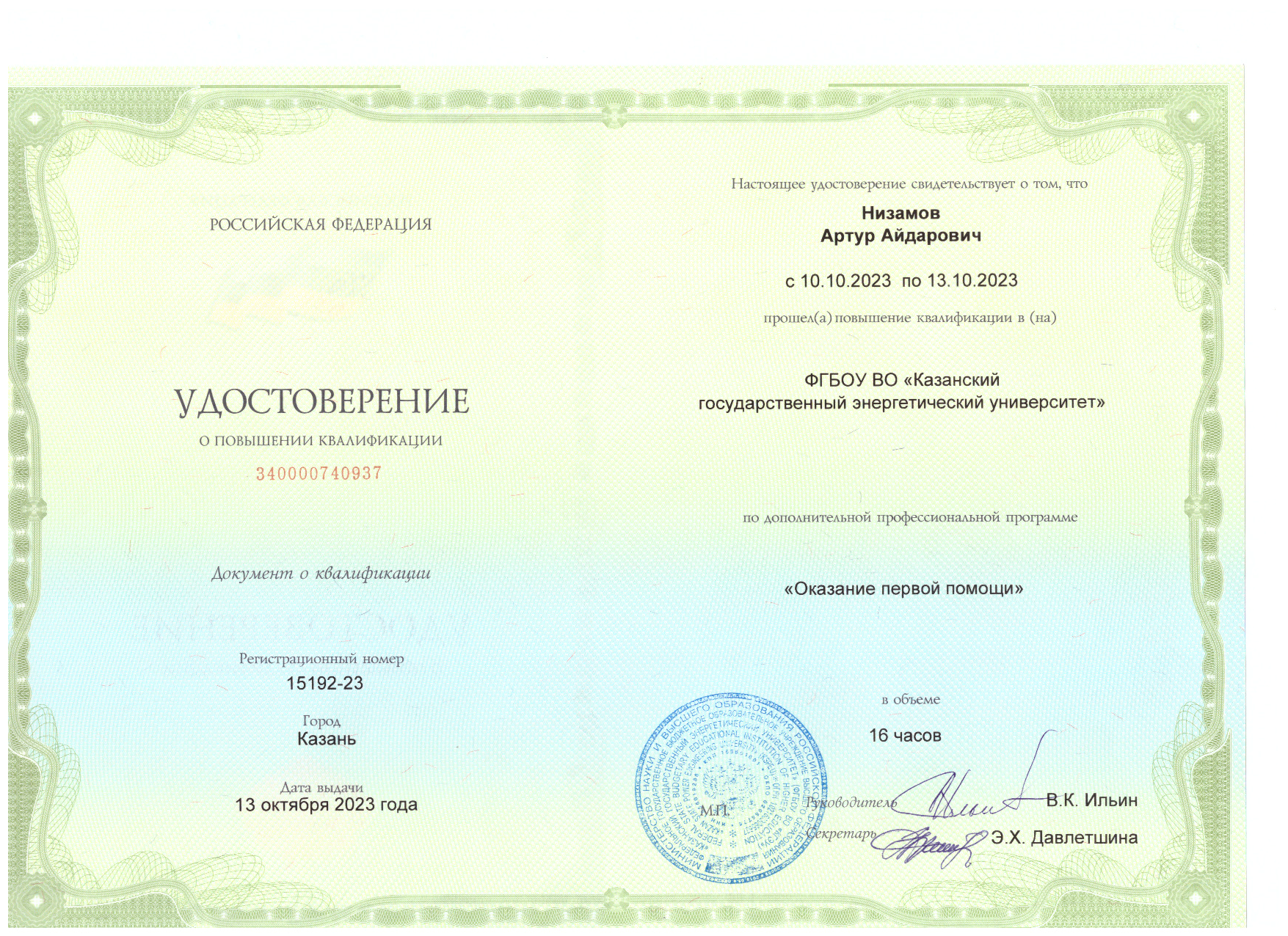 ФГБОУ ВО "КГЭУ" Оказание первой помощи 15192-23 11.10.2023 16