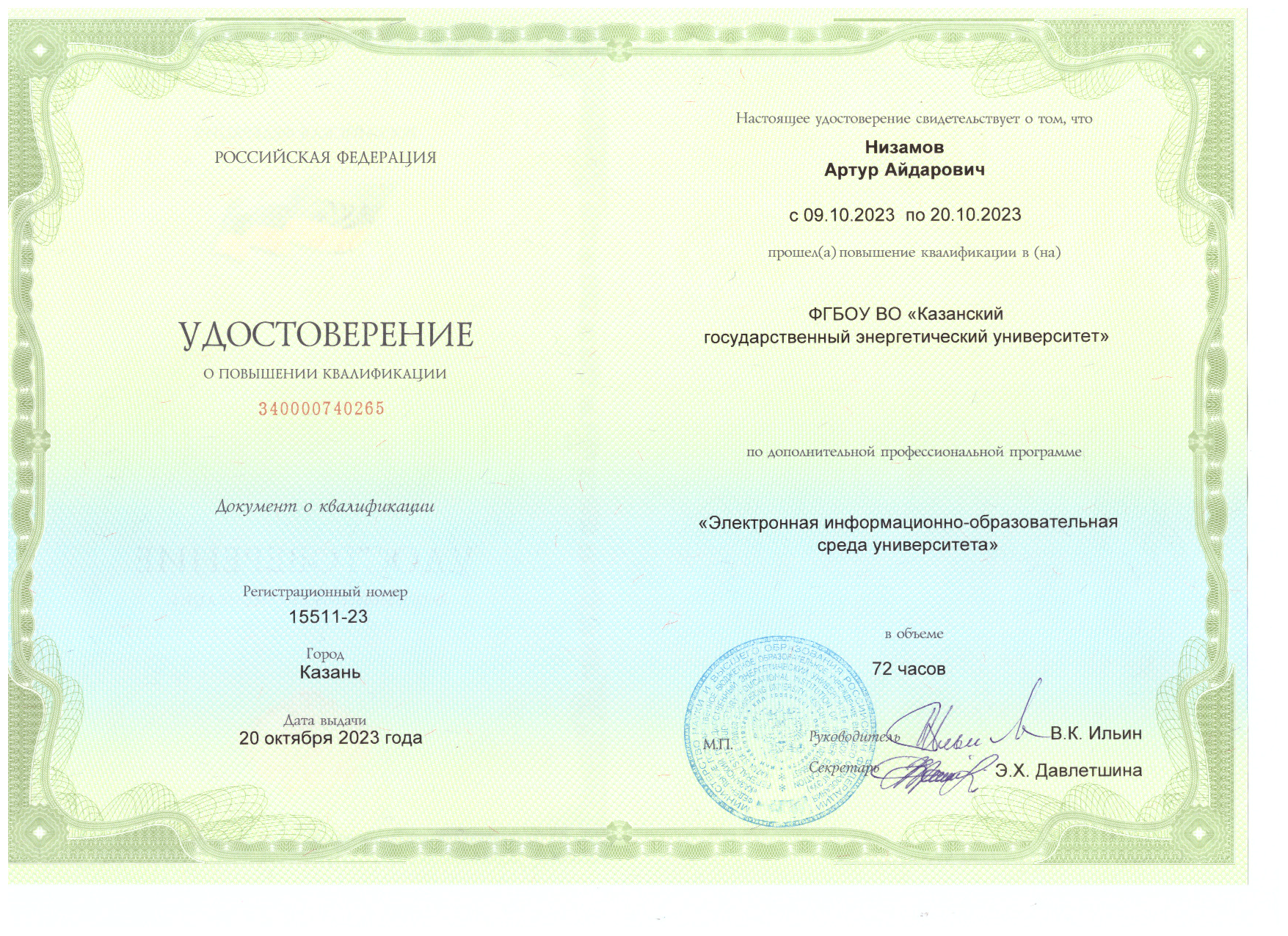 ФГБОУ ВО "КГЭУ" Электронная информационно-образовательная среда университета 15511-23 05.10.2023 72