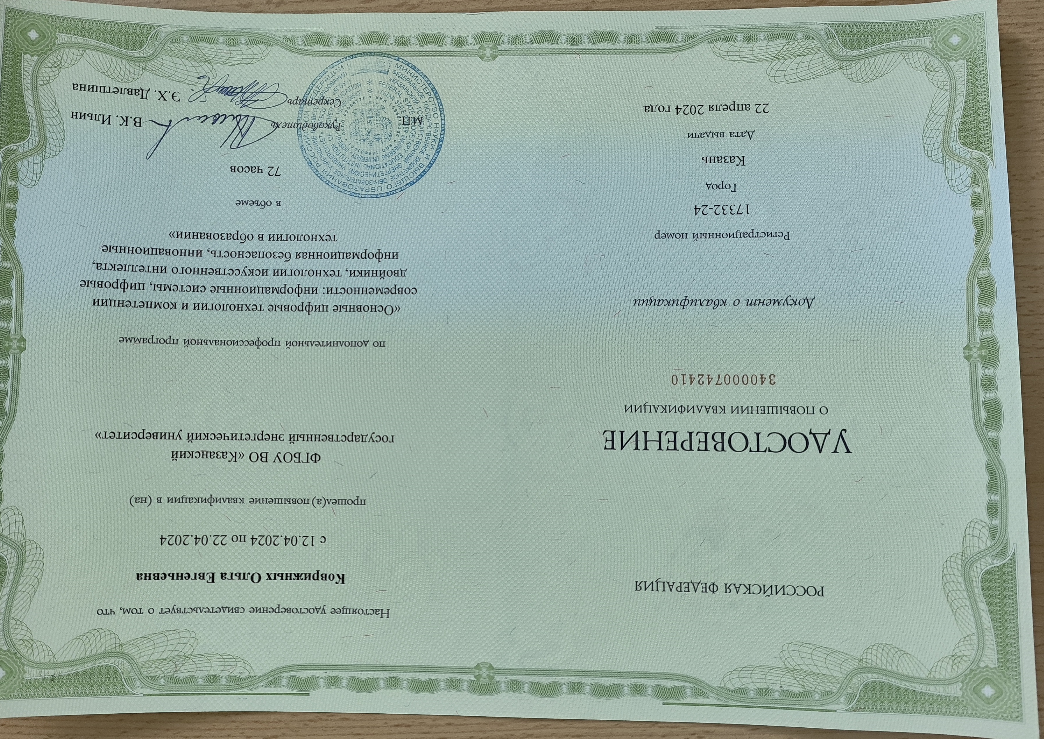 «Основные цифровые технологии и компетенции современности: информационные системы, цифровые двойники, технологии искусственного интеллекта, информационная безопасность, инновационные технологии в образовании» |