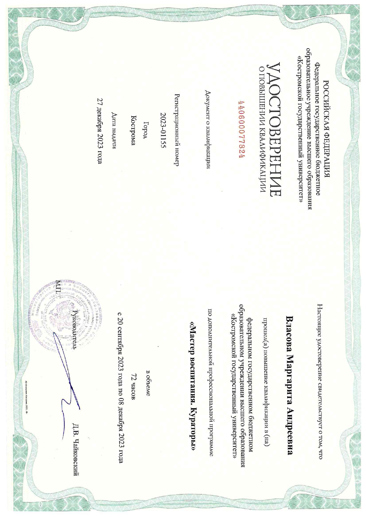 ФГБОУ ВО "КГУ" Мастер воспитания. Кураторы 2023-01155 27.12.2023 72
