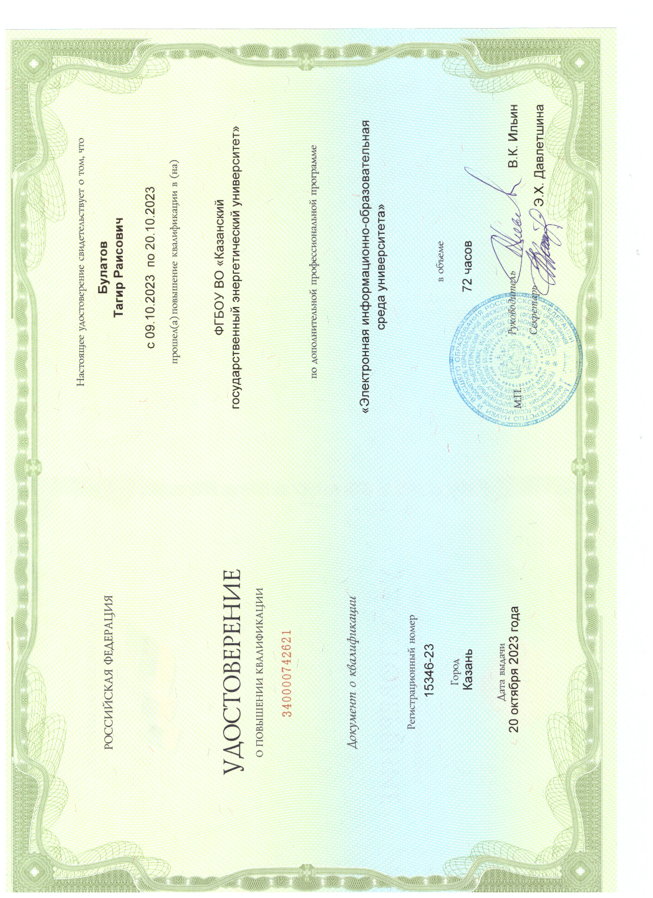ФГБОУ ВО «Казанский государственный энергетический университет» Программа дополнительного образования «Электронная информационно-образовательная среда университета» 340000742621 20.10.2023 72