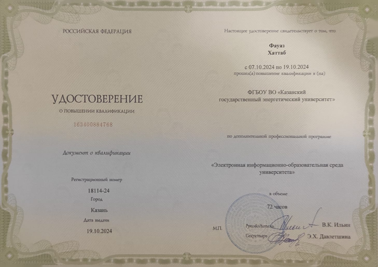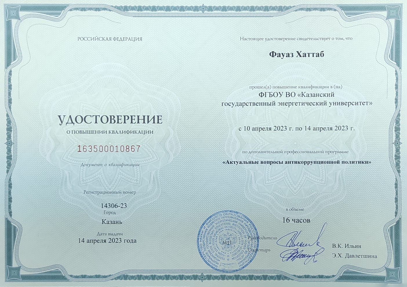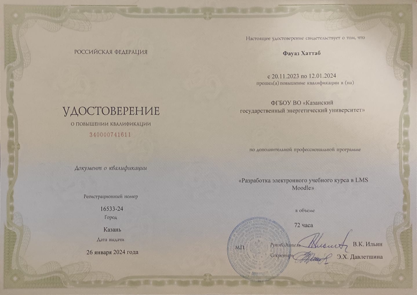 Диплом о профессиональной переподготовке (Преподаватель высшей школы) |