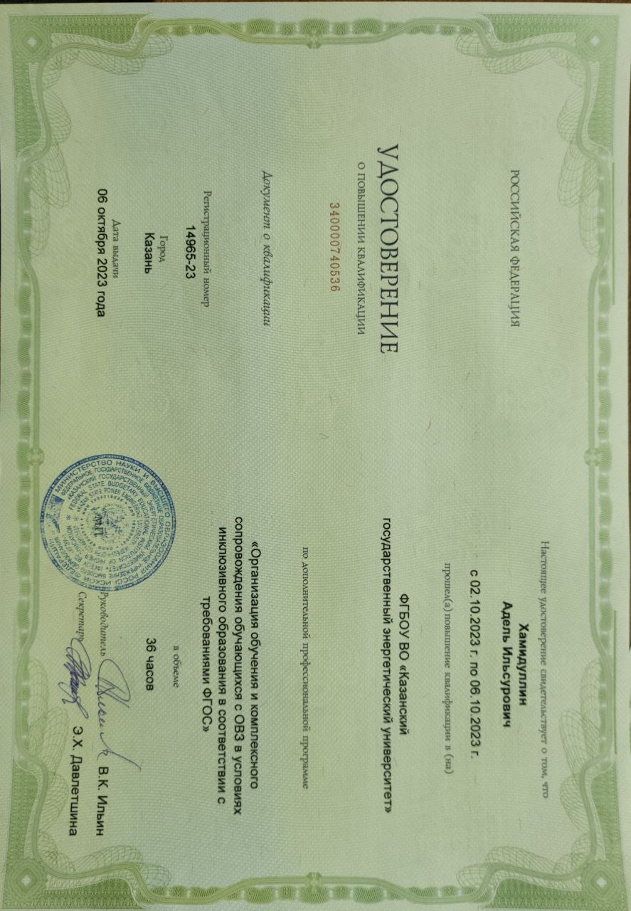 ФГБОУ ВО "Казанский государственный энергетический университет" Организация обучения и комплексного сопровождения обучающихся с ОВУЗ в условиях инклюзивного образования в соответствии с требованиями ФГОС 14965-23 06.10.2023 36