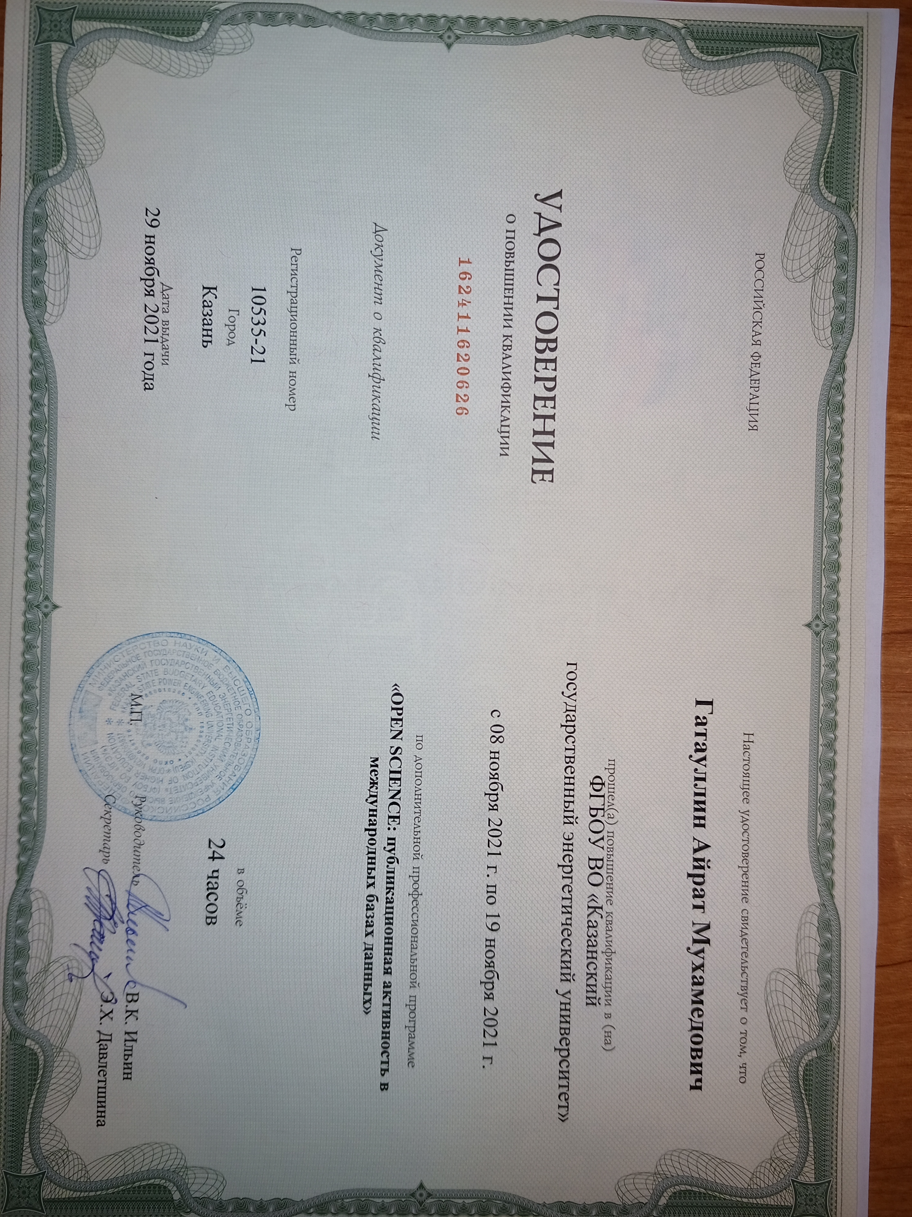 Gataullin A.M. Recording and processing of partial Discharge signals. //Instruments and Experimental Techniques. V. 57. № 4. 2014. pp. 236-430. (SCOPUS) |