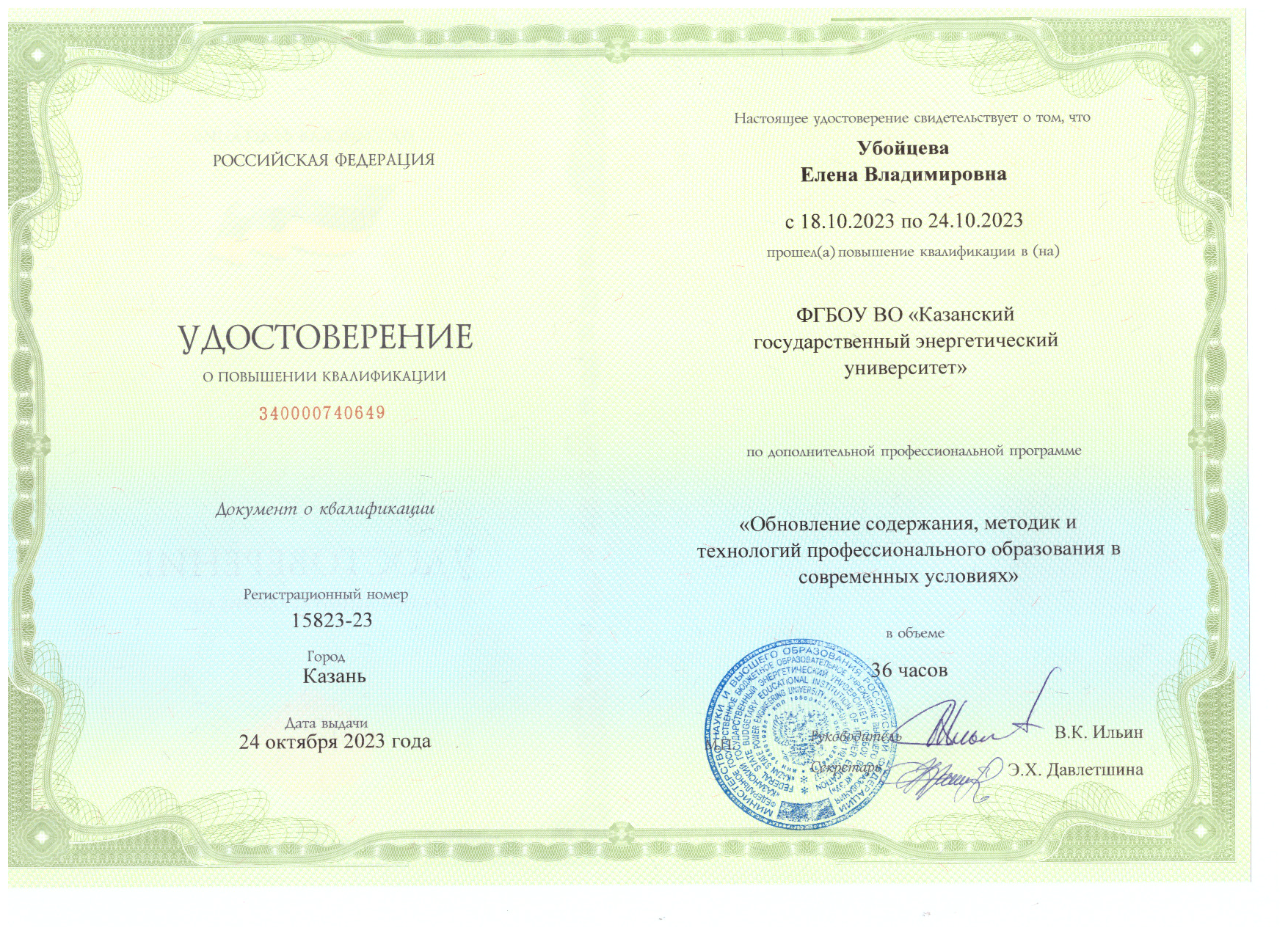 ФГБОУ ВО "КГЭУ" Обновление содержания, методик и технологий профессионального образования в современных условиях 15823-23 24.10.2023 36