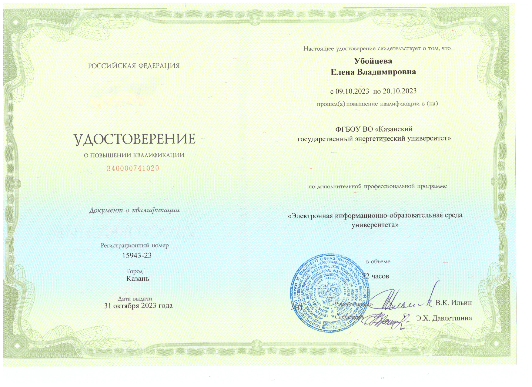 ФГБОУ ВО "КГЭУ" Электронная информационно-образовательная среда университета 15943-23 31.10.2023 72