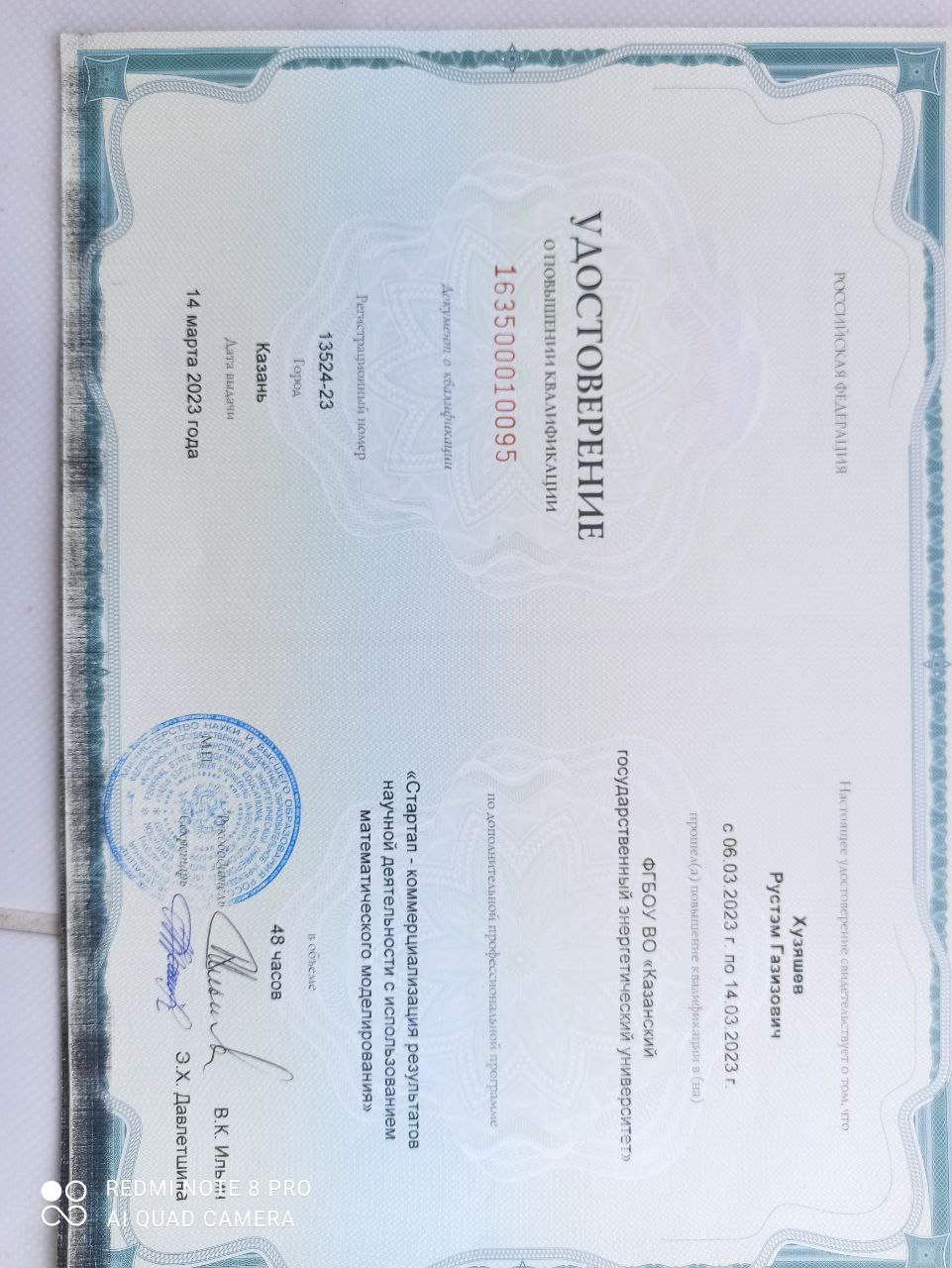 КГЭУ Стартап-коммерциализация результатов научной деятельности 163500010095/13524-23 14.03.2023 48
