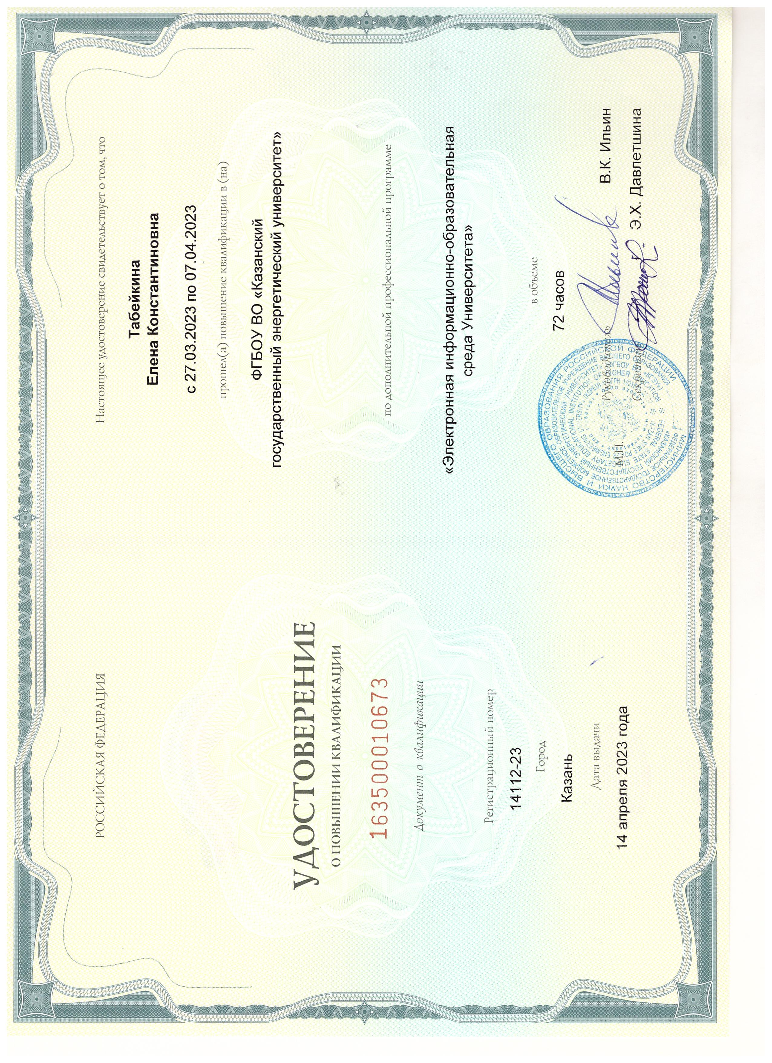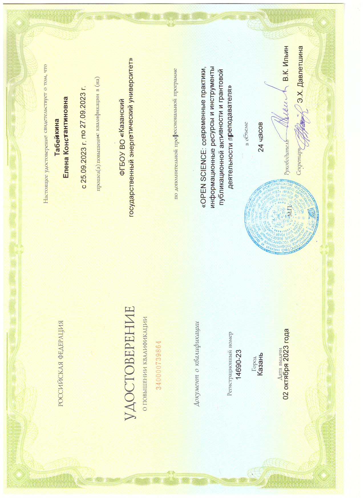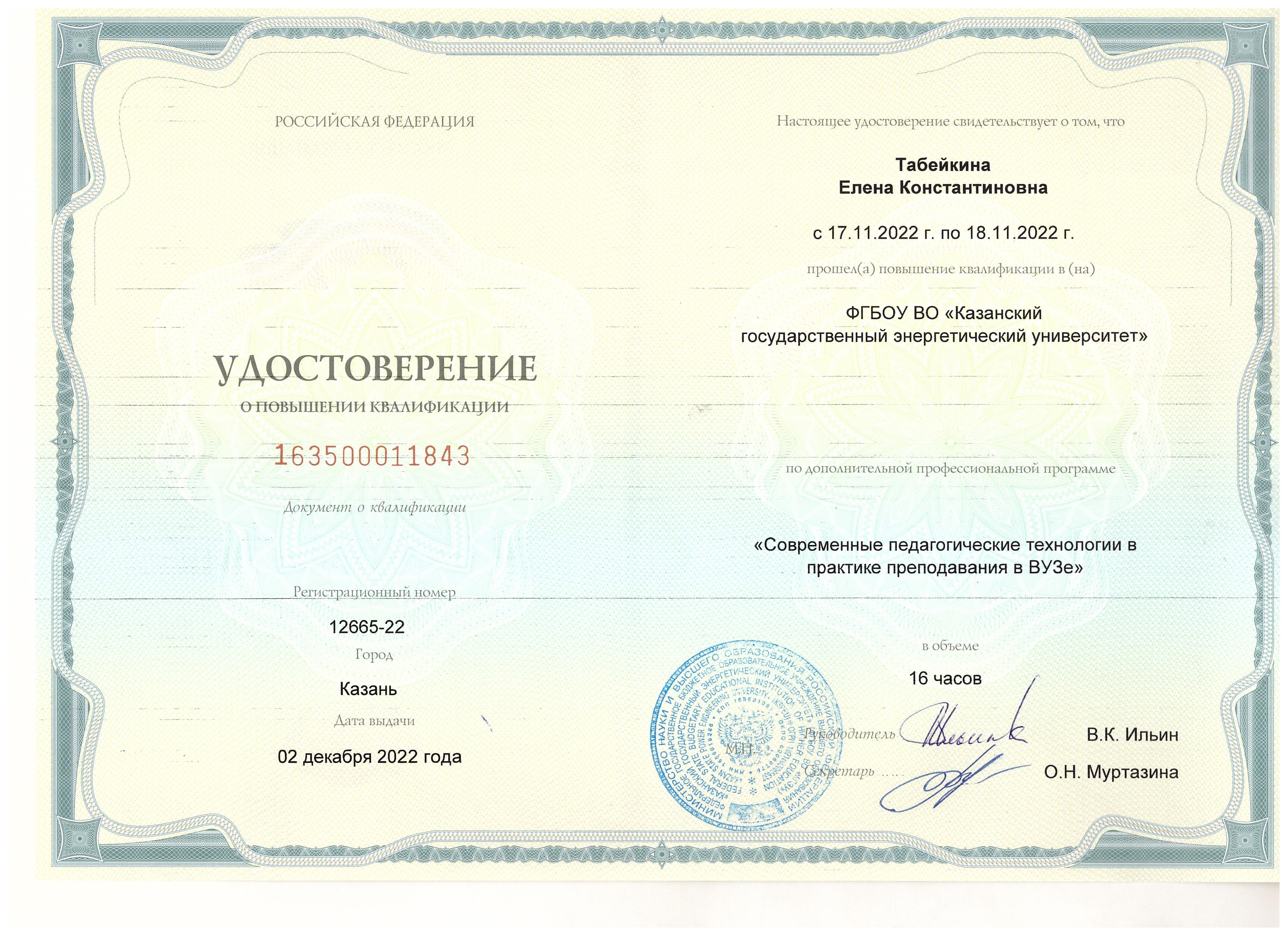 Табейкина ЕК "Применение эмоциональных и интеллектуальных средств для развития познавательной деятельности студентов при изучении истории" Сборник ; Внедрение научных исследований в образовательный процесс вуза.Материалы II международного Круглого стола, посвященного Дню преподавателя высшей школы.Казань.2023.с.259-262 |