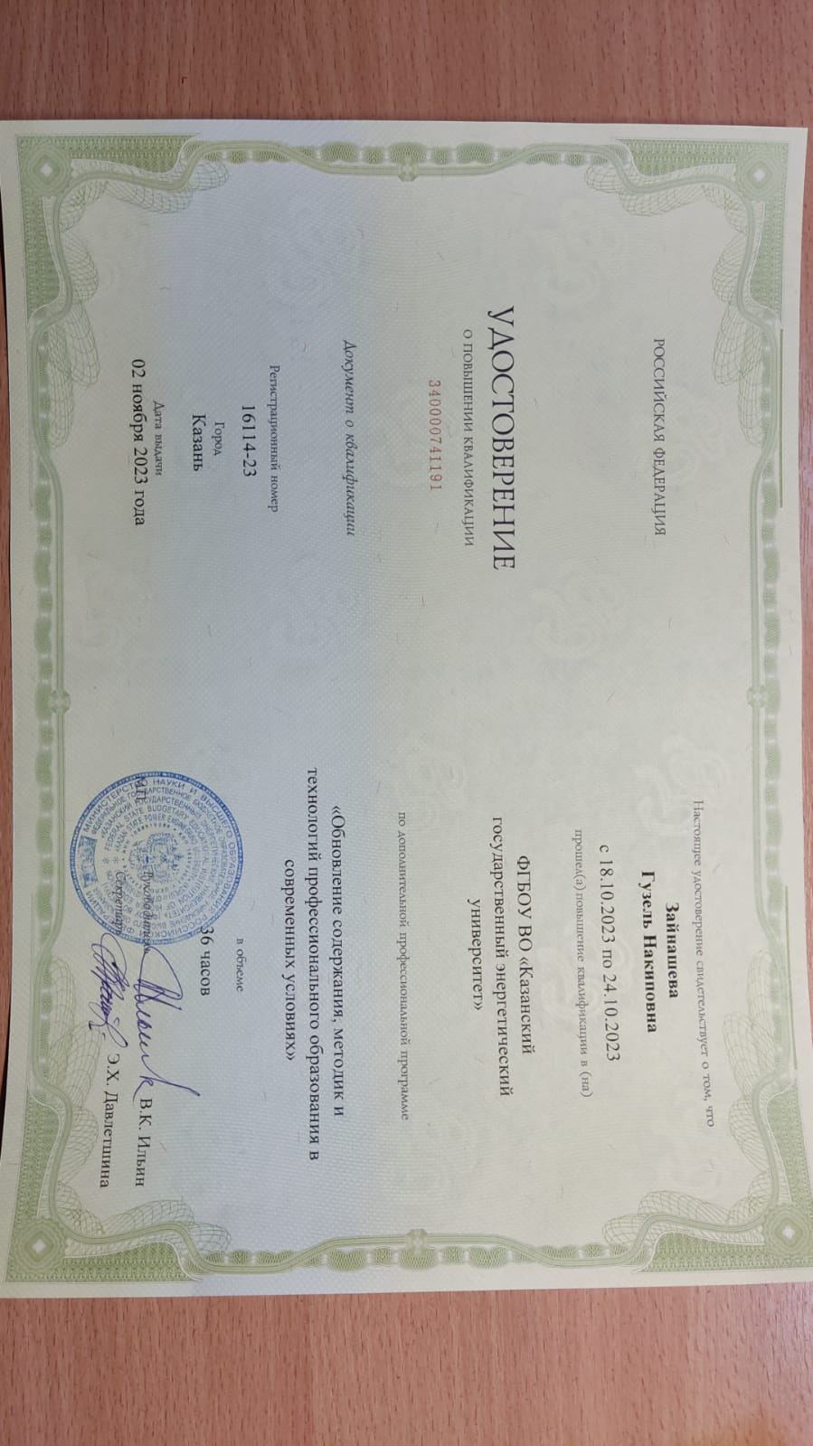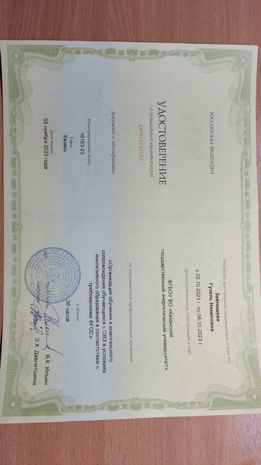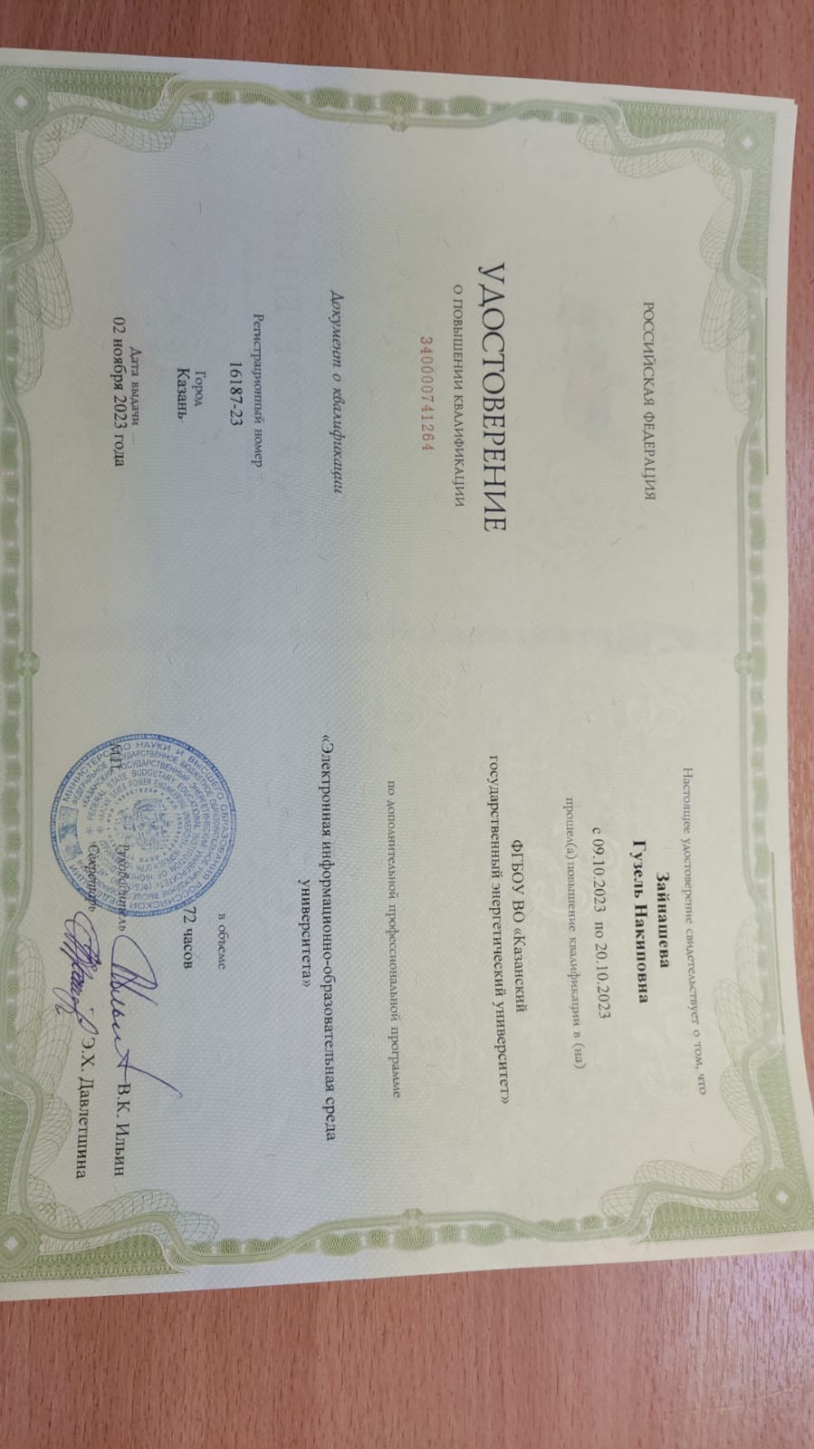 Стаж научно - педагогической работы Зайнашевой Г.Н. составляет 34 года.