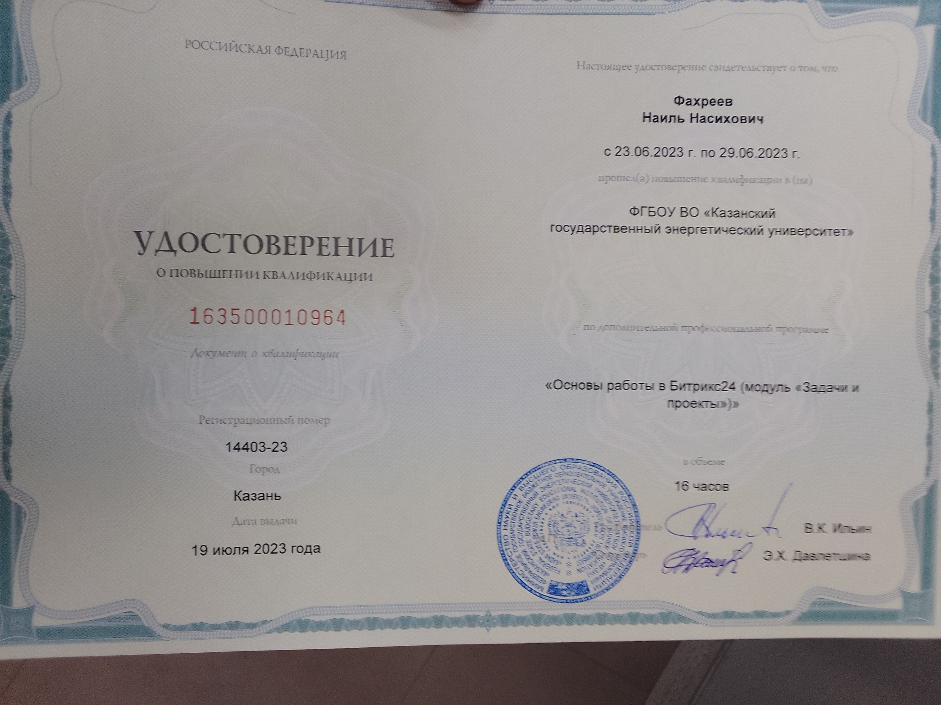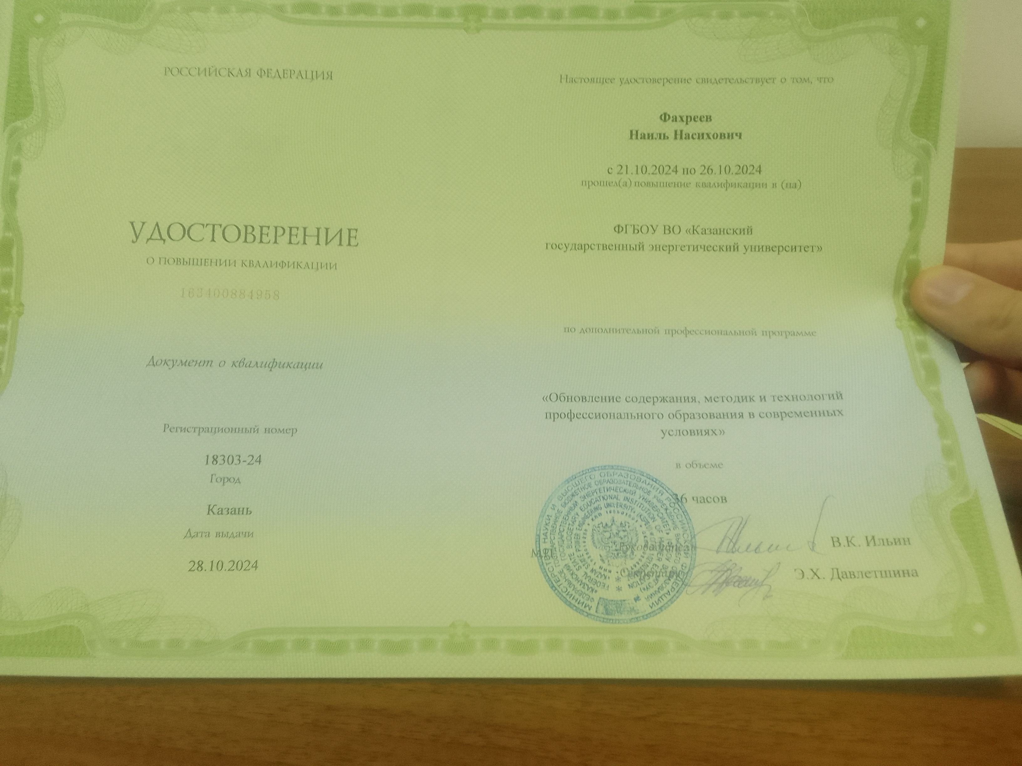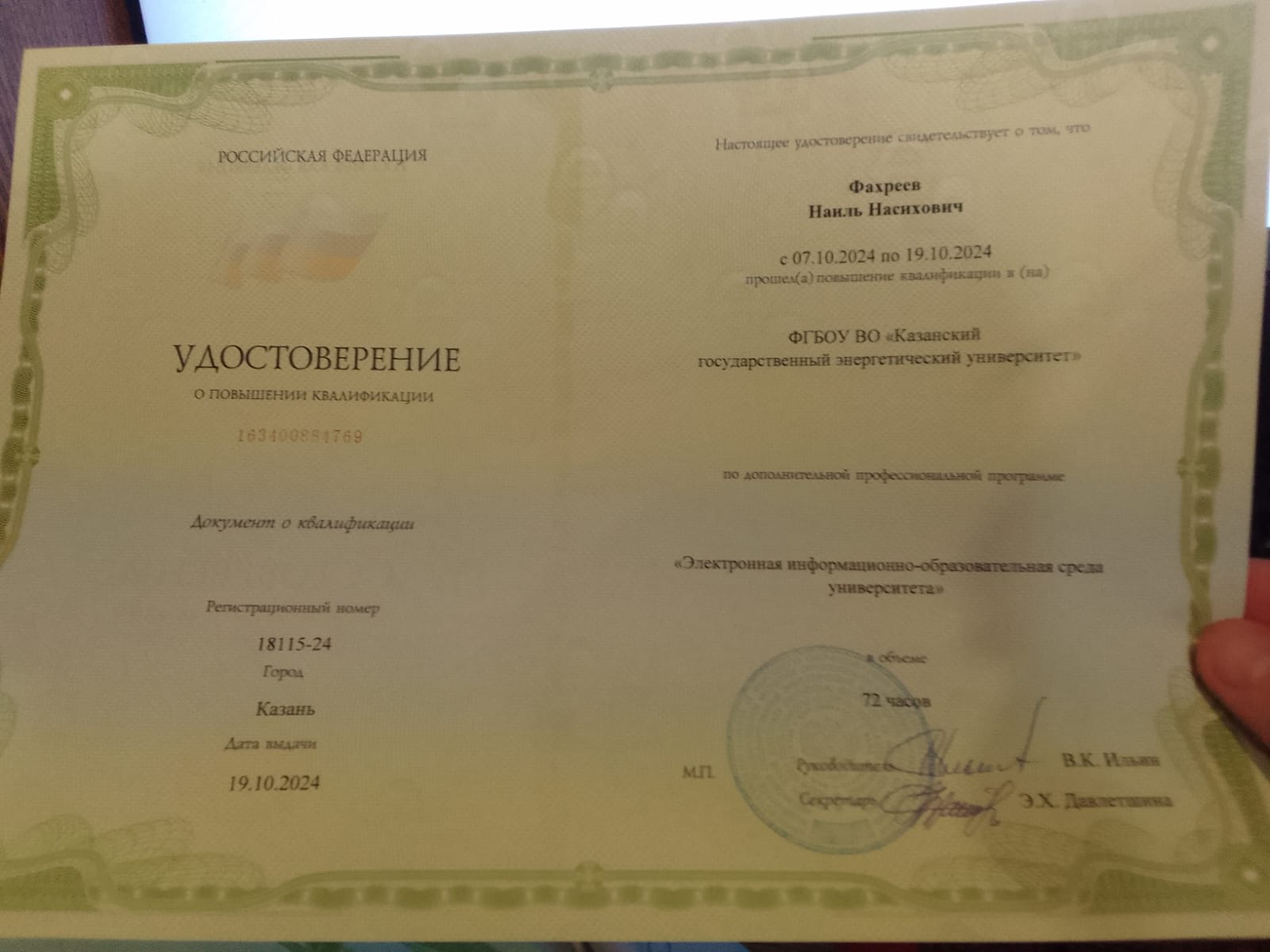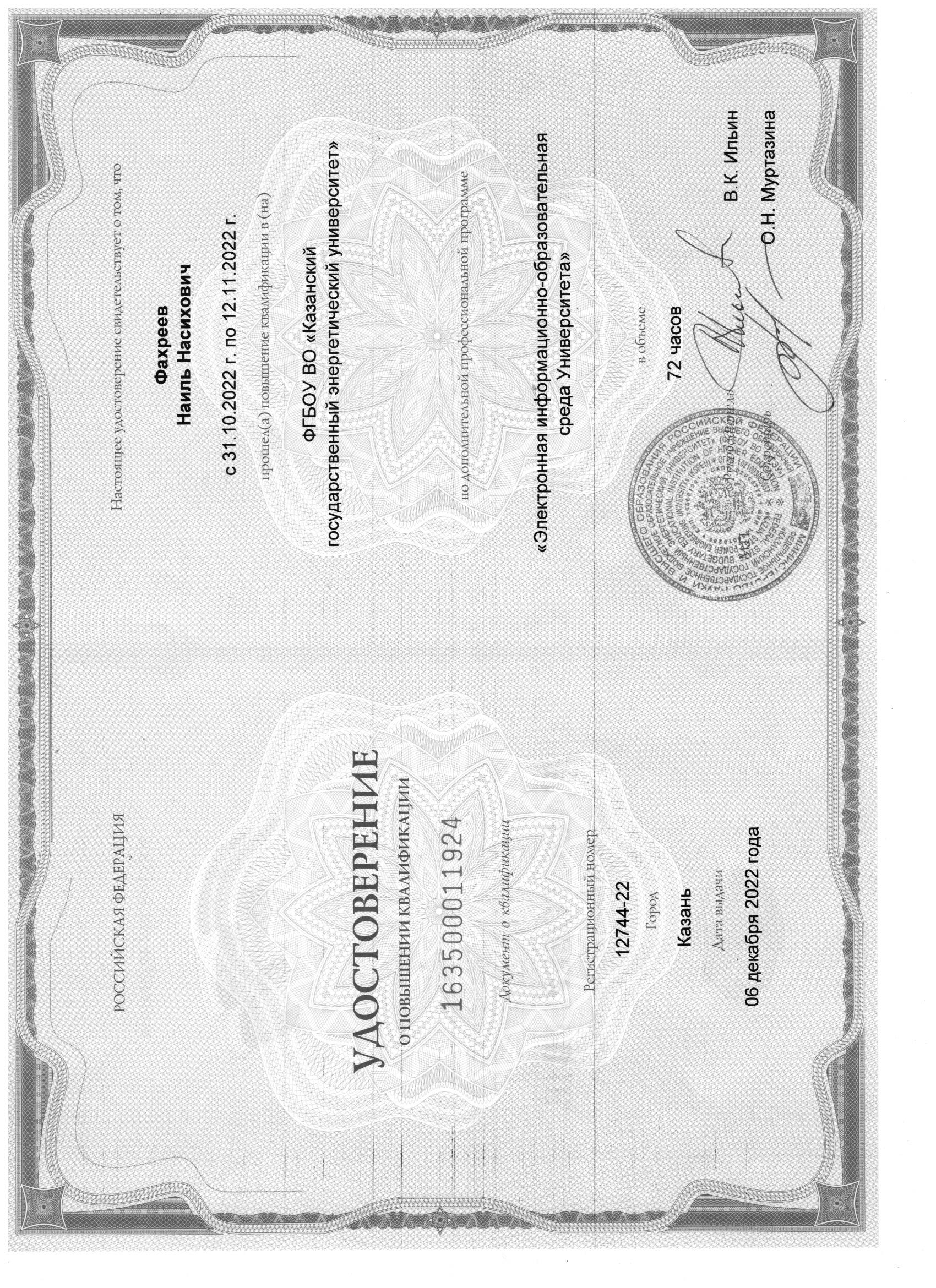 повышение квалификации по доп. проф. программе "Цифровые технологии в преподавании профильных дисциплин" |