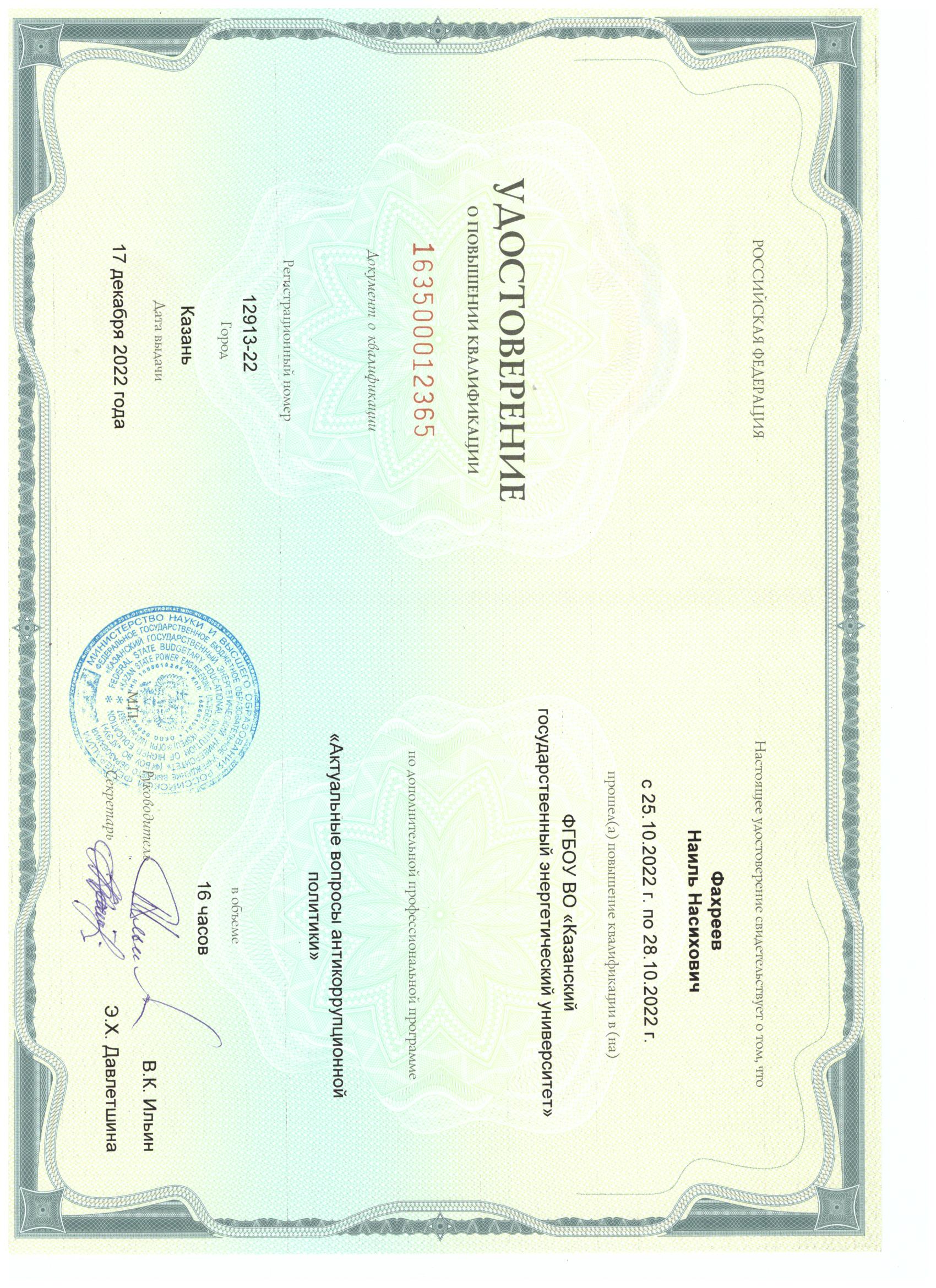 повышение квалификации по ДПП "Актуальные вопросы антикоррупционной политики" |