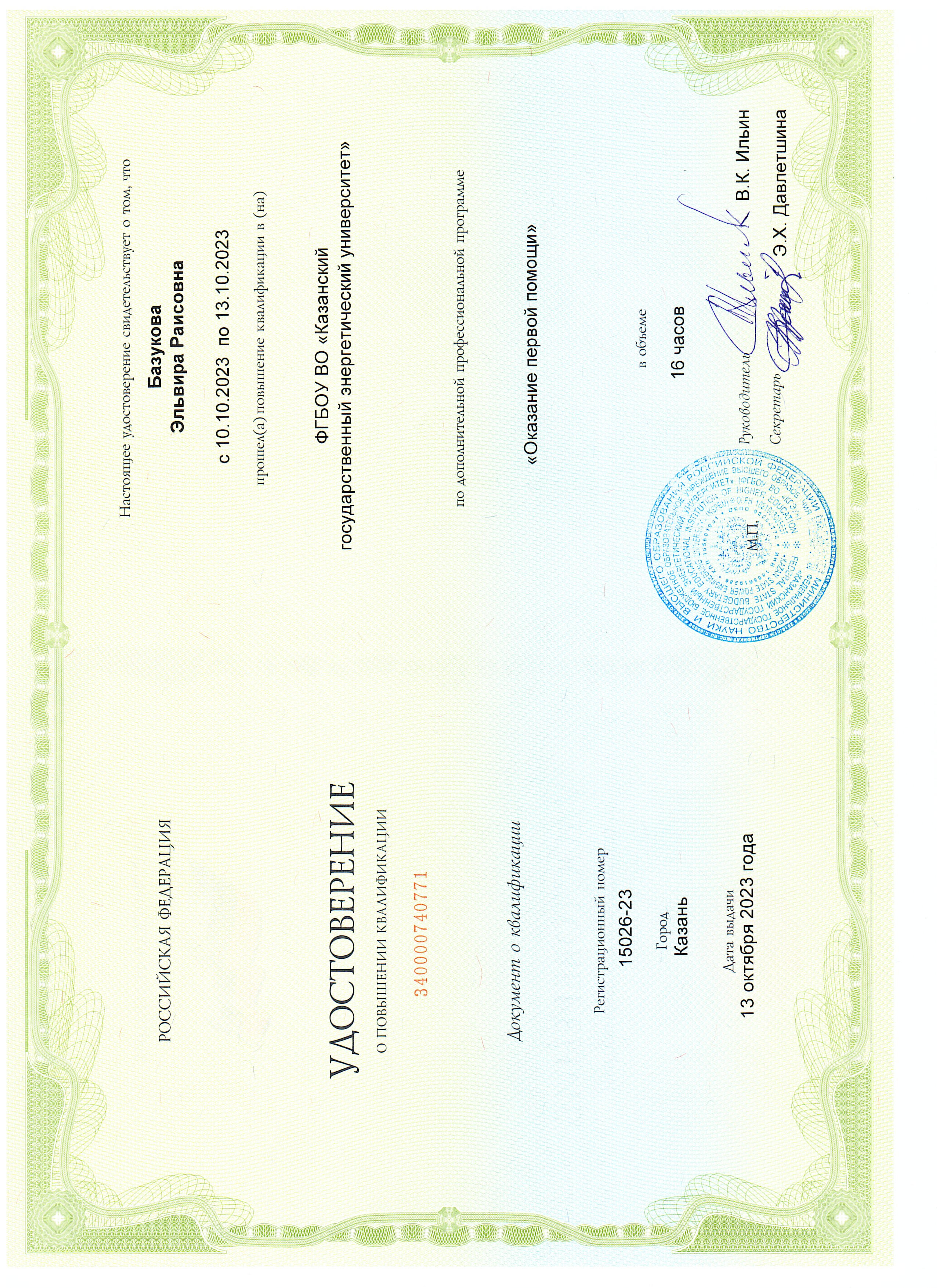 КГЭУ Оказание первой помощи 15026-23 13.10.2023 16
