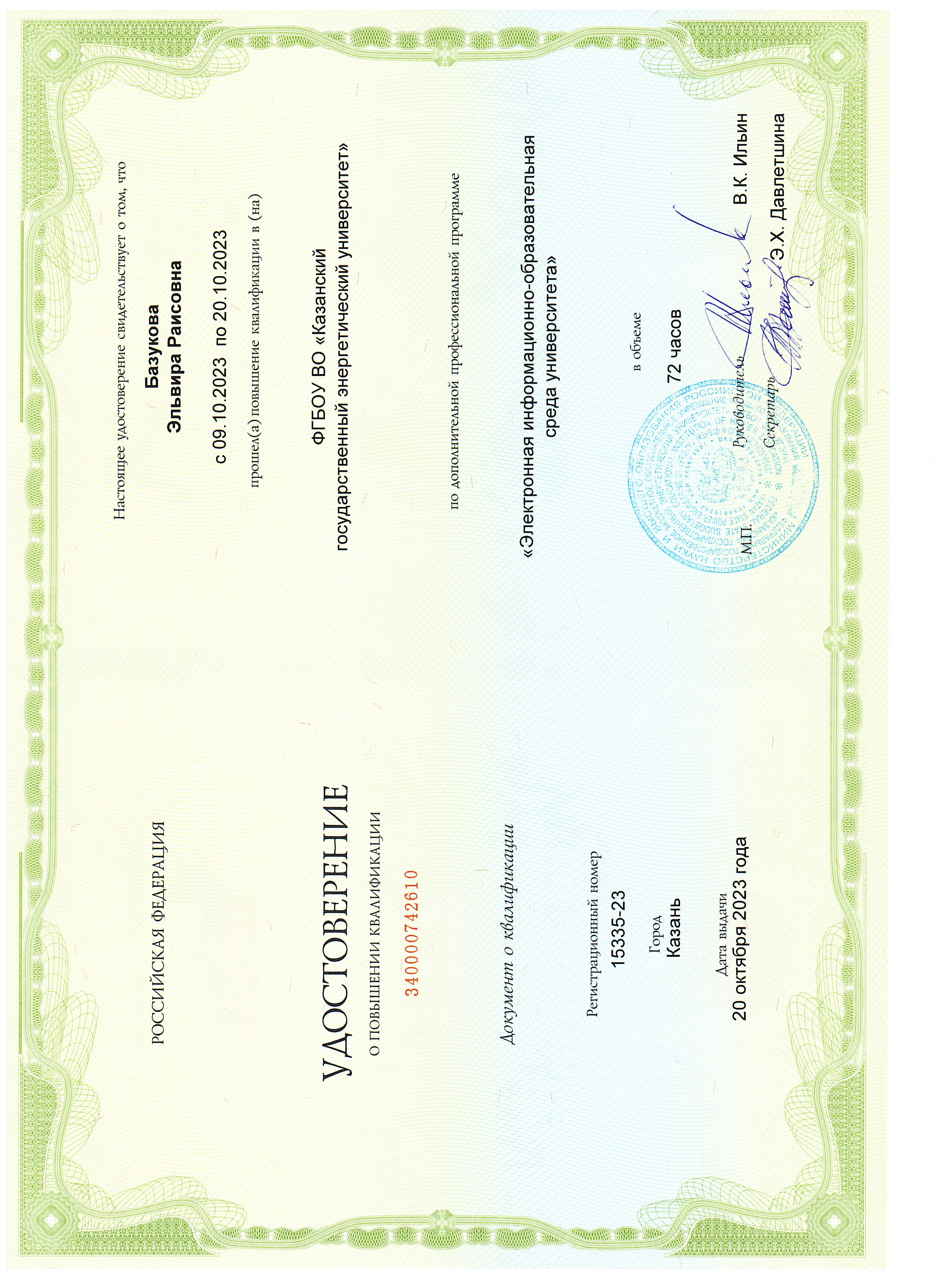 КГЭУ Электронная информационно-образовательная среда университета 15335-23 20.10.2023 72