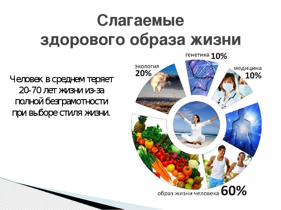Здоровый образ жизни — это стиль жизни, направленный на оздоровление и омоложение всего организма, отказ от вредных привычек и спокойной, не вызывающей нервных потрясений, создание режима дня, в котором есть место для полноценного отдыха, продуктивной работы и физической активности.