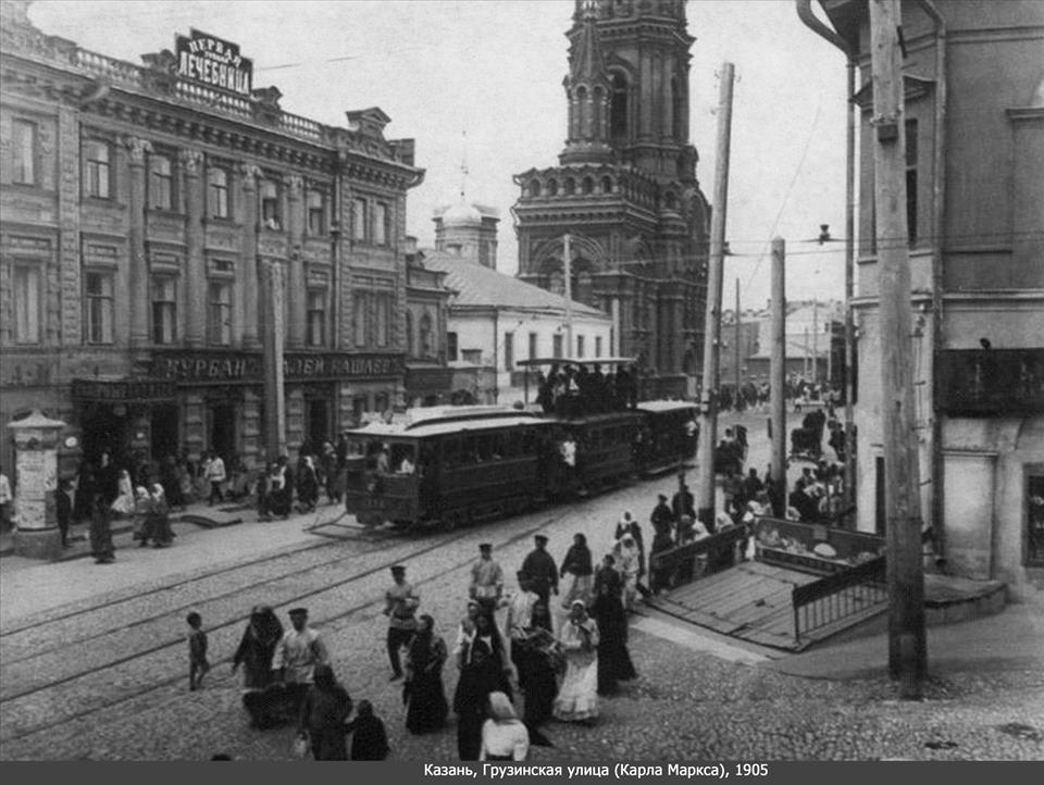 В 1895 году в Казанеи была пущена первая городская электростанция постоянного тока напряжением 175 В («Красная Заря» после 1917 года) изначально стаявшая «позади городского театра».