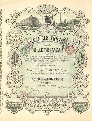 Облигация бельгийского АО «Газ и электричество города Казани»