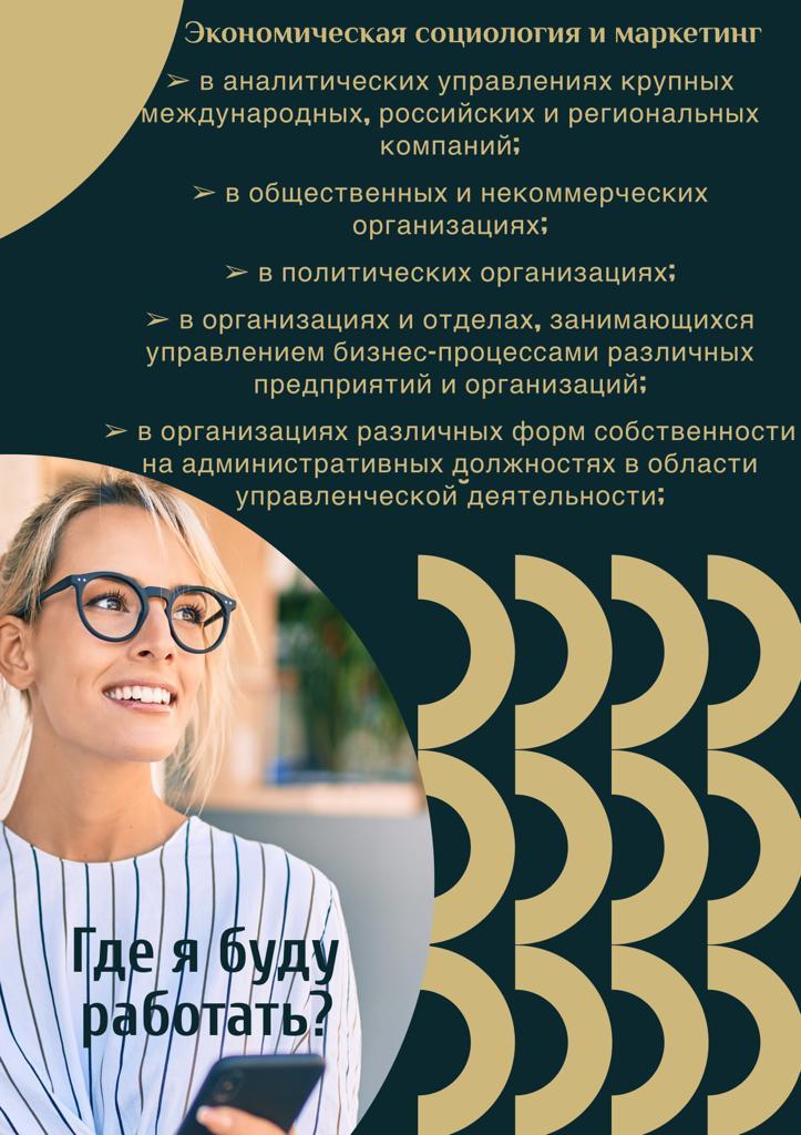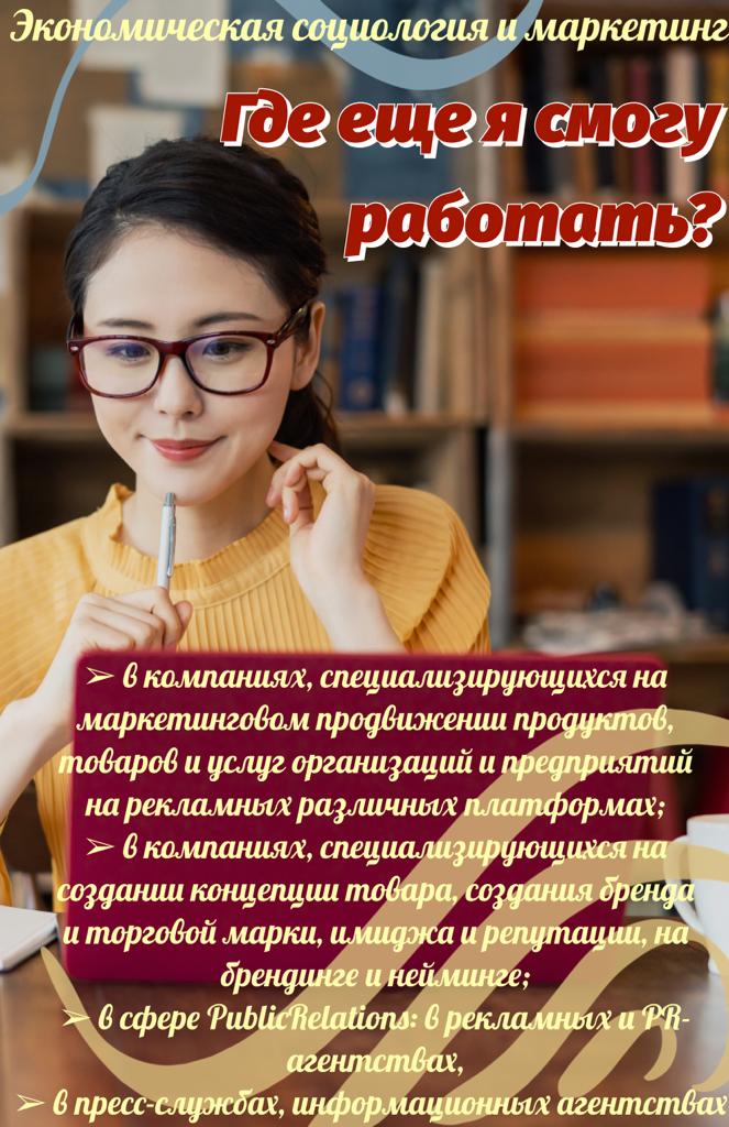 После завершения обучения на профиле «Экономическая социология и маркетинг» специалист сможет предоставлять кампаниям полный цикл маркетинговых услуг:
