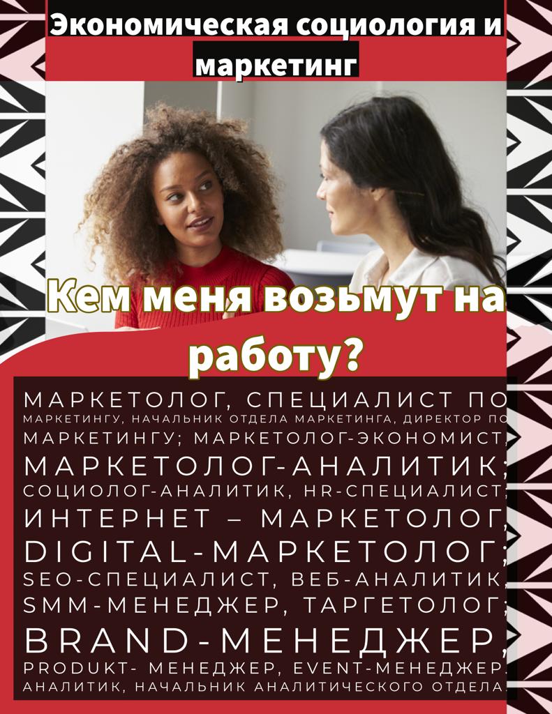 Информация о направлении представлена в социальной сети "ВКОНТАКТЕ" Экономическая социология и маркетинг и в группе абитуриентов в Telegram канале, а также на сайте в разделе «Образовательные программы»: