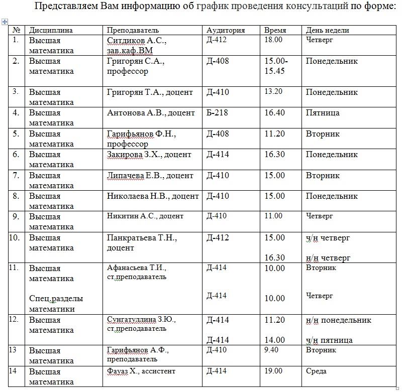Сунгатуллина З.Ю. 6.06.2022 17:00-18:00 Д 414;8.06.2022 10.00-12.00 В-109.