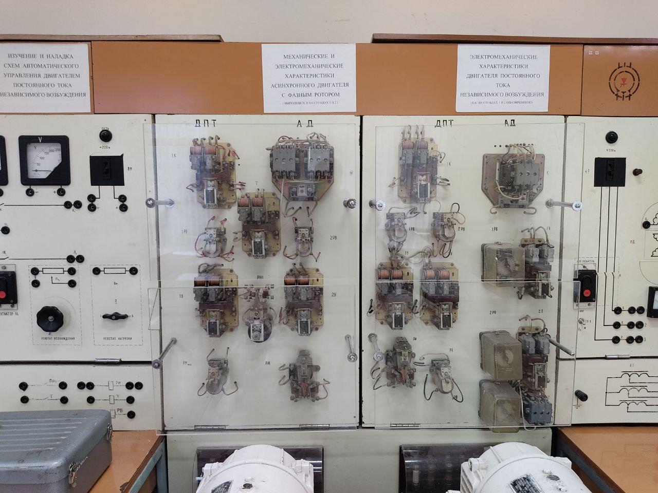 Обучение проходит на асинхронных спарках и двигателях постоянного тока, что позволяет студентам изучать как независимое, так и параллельное возбуждение.