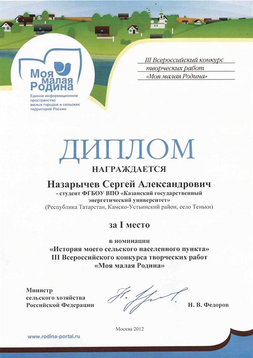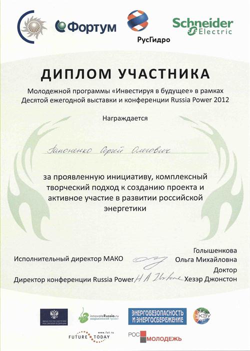 ГРАНТ СТИПЕНДИИ ПРЕЗИДЕНТА РФ (2012-2014)