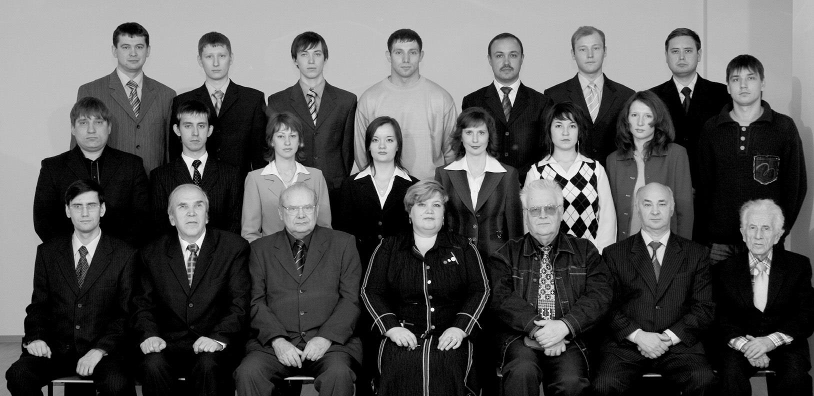 В нижнем ряду слева направо: Э.Р. Базукова, К.Ф. Халитов, А.Е. Кондратьев, заведующий кафедрой Ю.В. Ваньков, Е.Е. Костылева, Г.Я. Малова, А.С. Гаврилов;