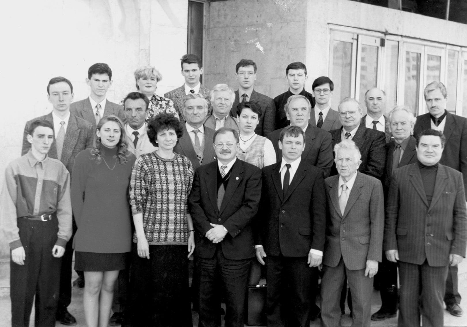 В нижнем ряду: М.А. Илюхин, А.М. Конахин, заведующий кафедрой Ю.В. Ваньков,