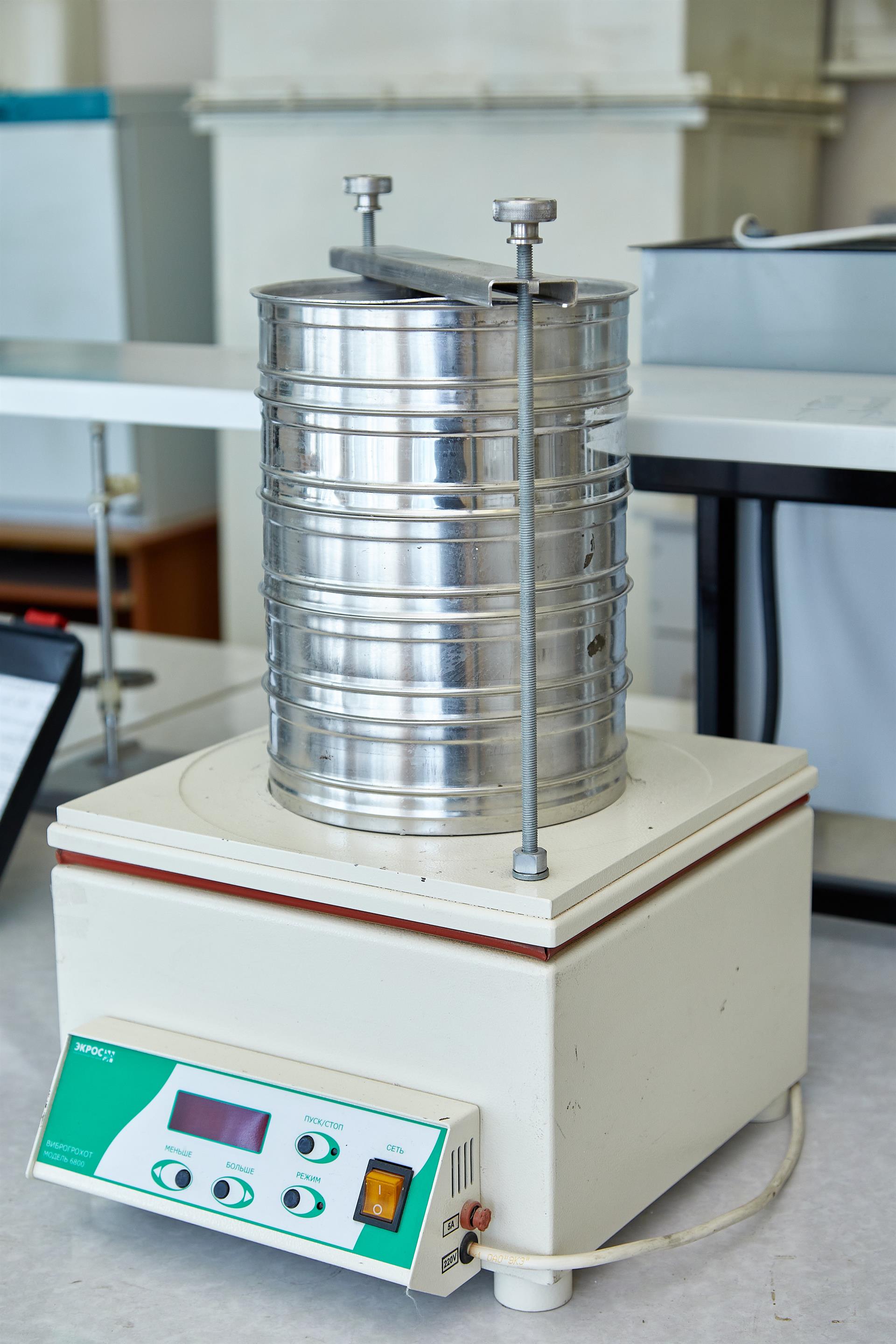 Виброгрохот предназначен для сообщения возвратно-поступательных винтовых колебаний установленным на нем элементам вибрационного технологического оборудования (например, сито лабораторное: СЛ ЭБ-120, СЛ ЭБ-200)