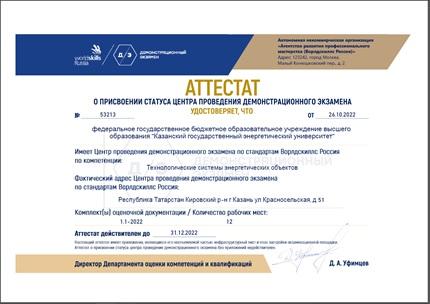 Экзамен проходит на аккредитованной по стандартам WorldSkills Russia площадке. «Лаборатория тренажеров атомной и тепловой энергетики» Казанского государственного энергетического университета получила аттестат о присвоении статуса центра проведения демонстрационного экзамена.