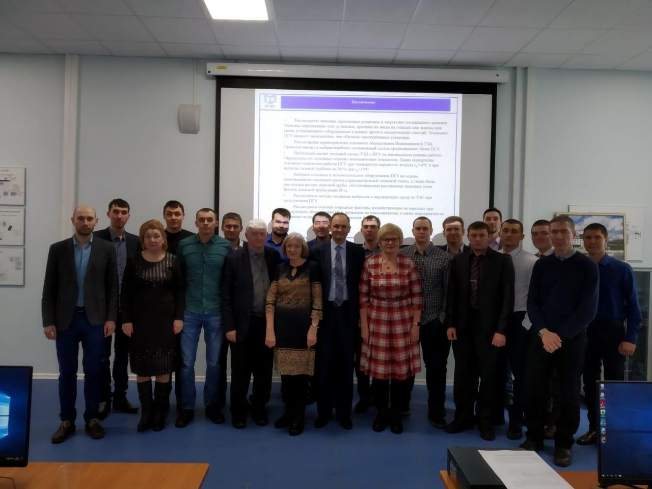 6 марта 2019 года состоялись защиты ВКР обучающихся по направлению 13.04.01 «Теплоэнергетика и теплотехника» (магистры, кафедра ТЭС) на предприятии: филиал АО «Татэнерго» Казанская ТЭЦ-1 - базовой кафедре «Тепловые электрические станции имени Али Ганеевича Ганеева» КГЭУ.