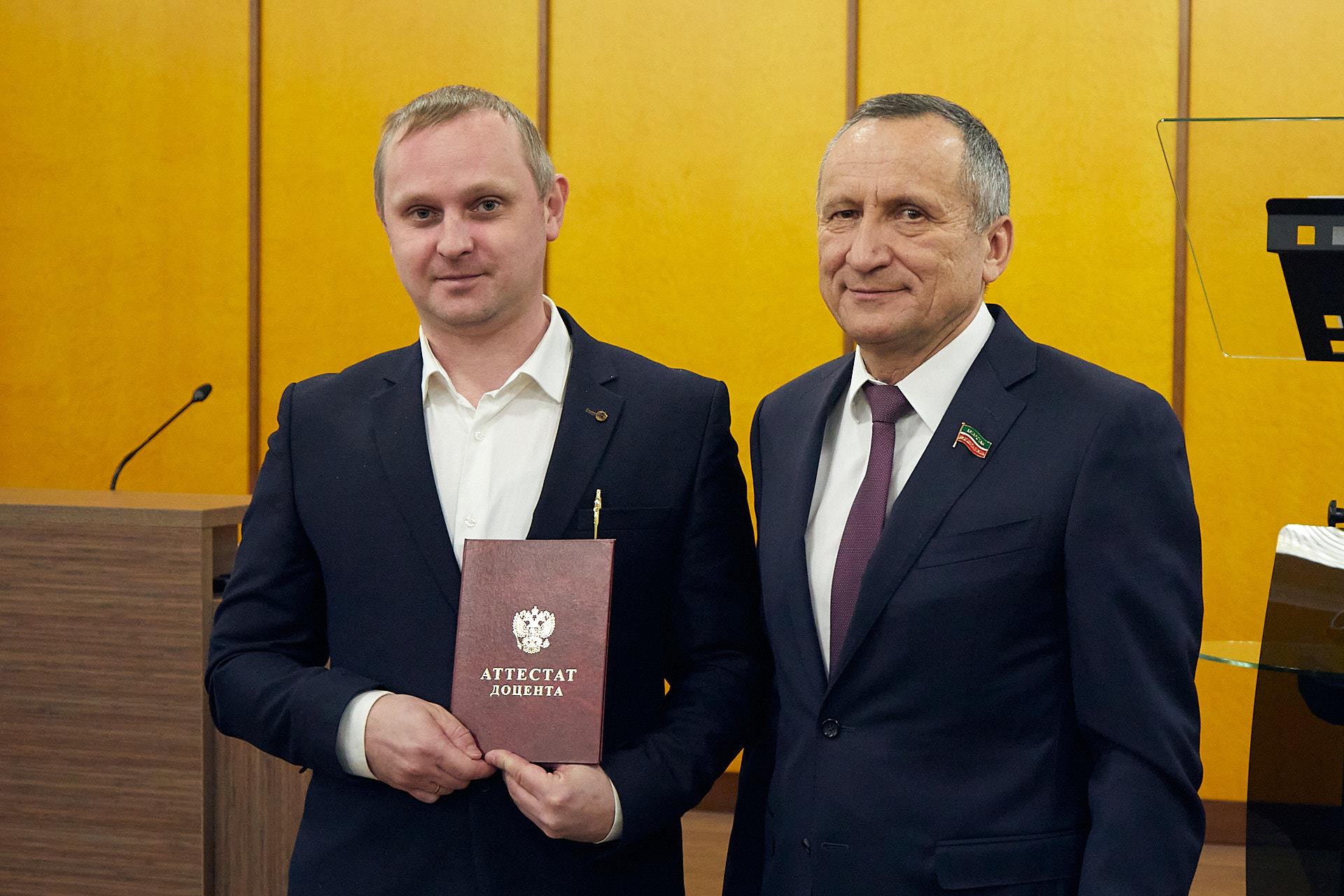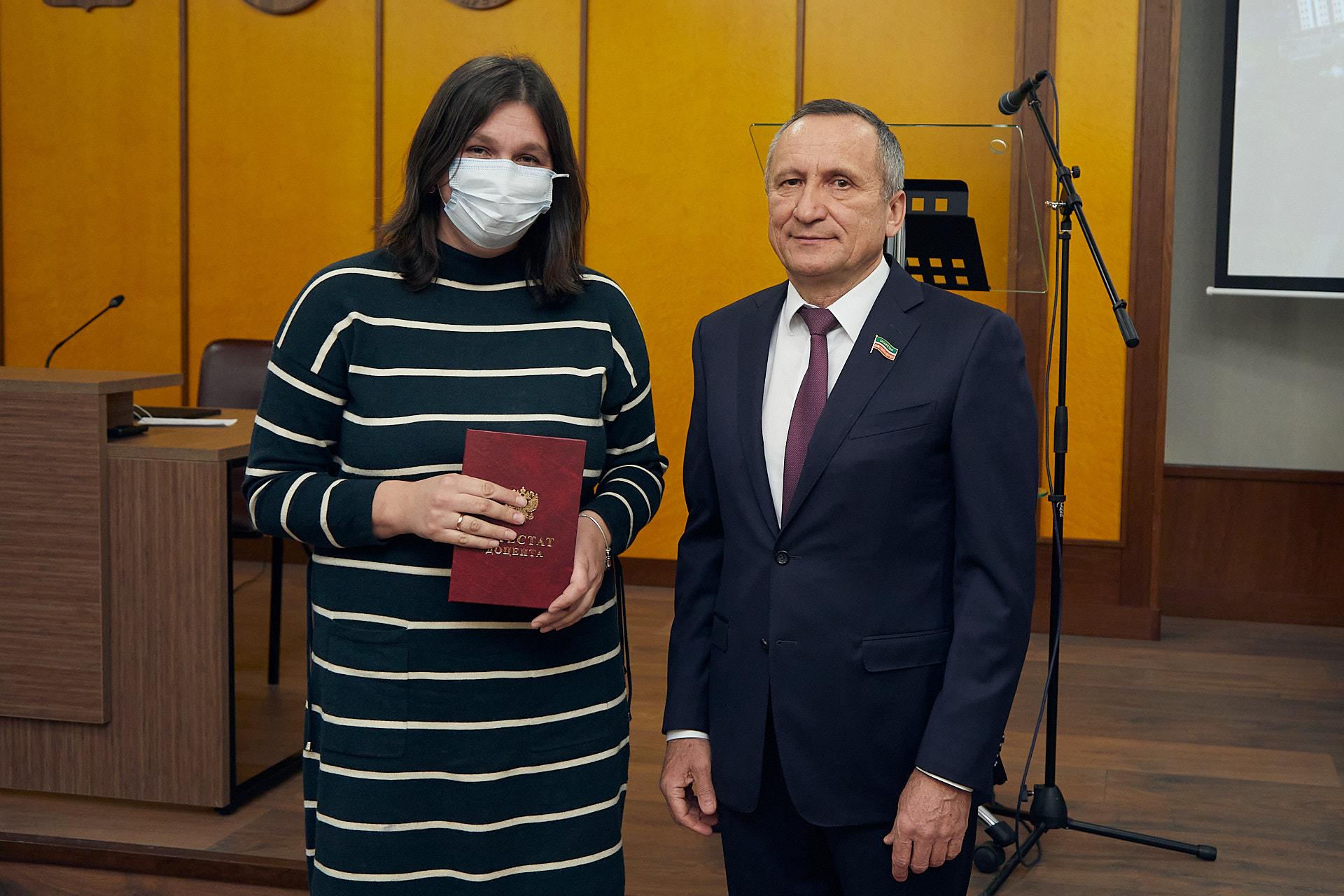 Аттестаты доцентов получили Артем Кубарев, Ирина Марзоева, Эльмира Нуруллина, Елена Табейкина и Равиль Шириев.
