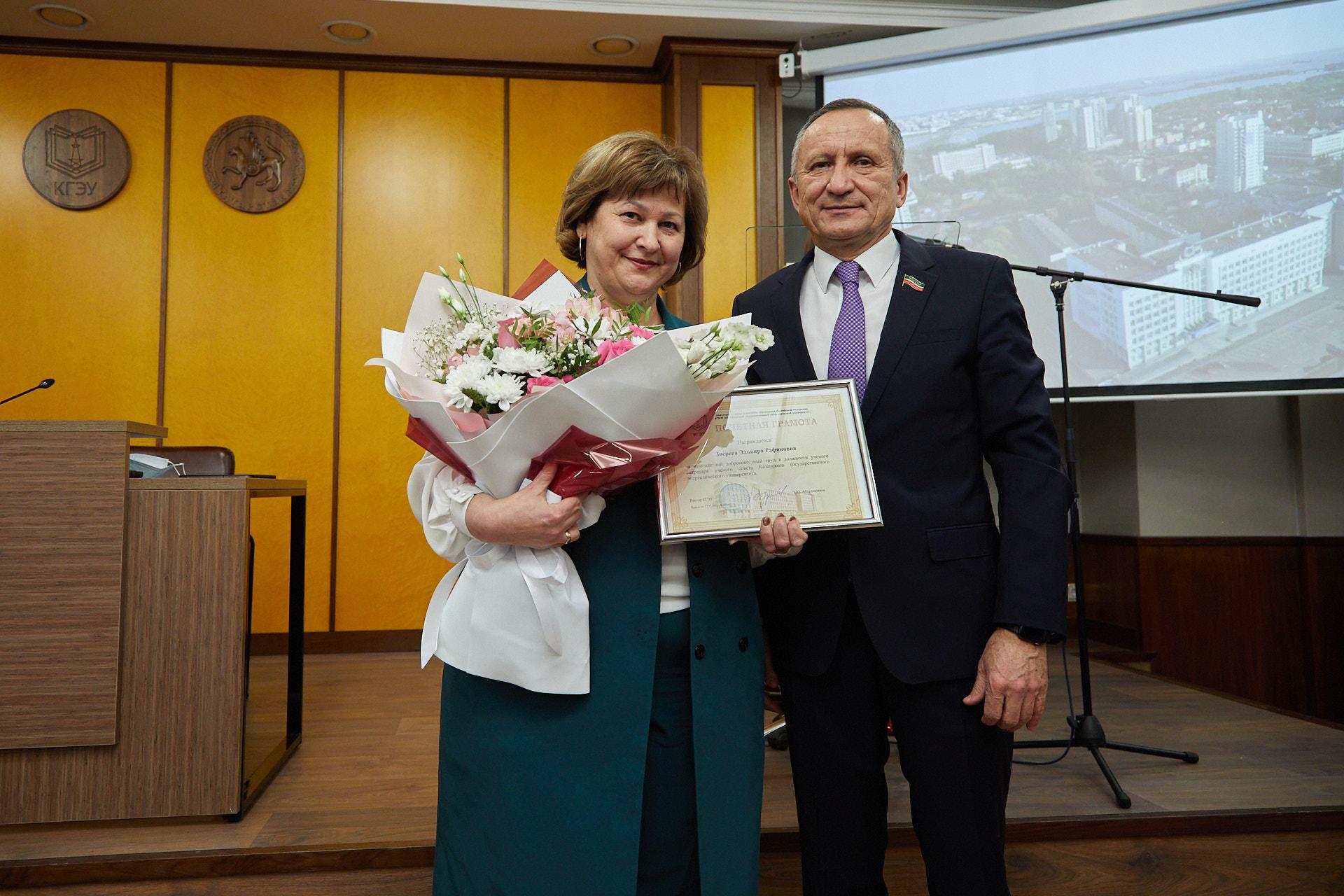 За многолетний добросовестный труд в должности ученого секретаря УС Казанского государственного энергетического университета поощрили Эльвиру Звереву. Диплом доктора технических наук вручили Альфреду Сафину (научный консультант - доктор технических наук, профессор, заведующий кафедрой «Электроснабжение промышленных предприятий» Игорь Ившин).
